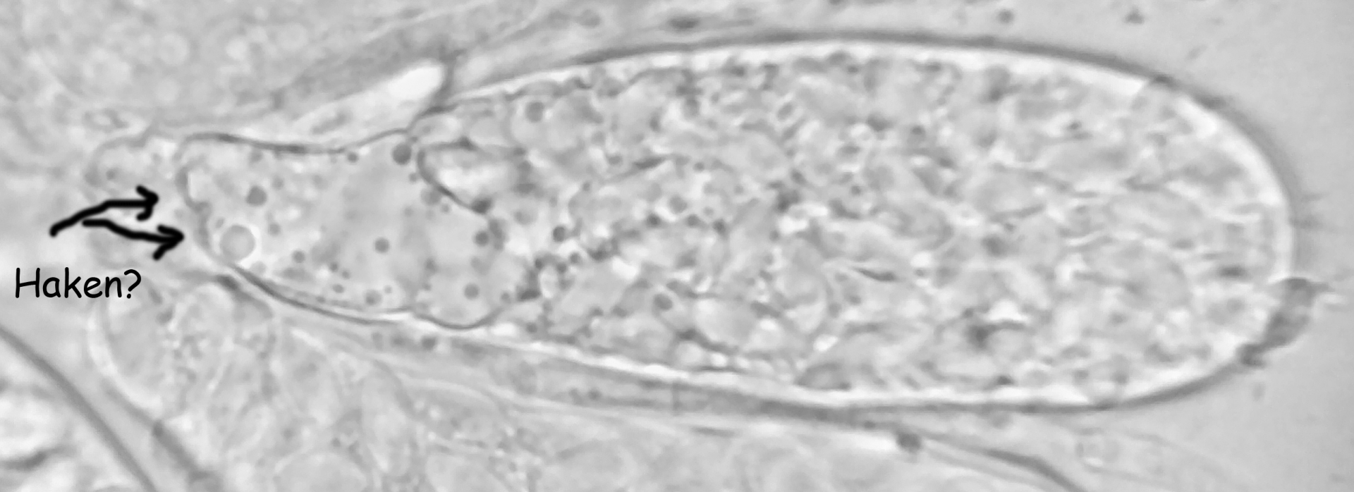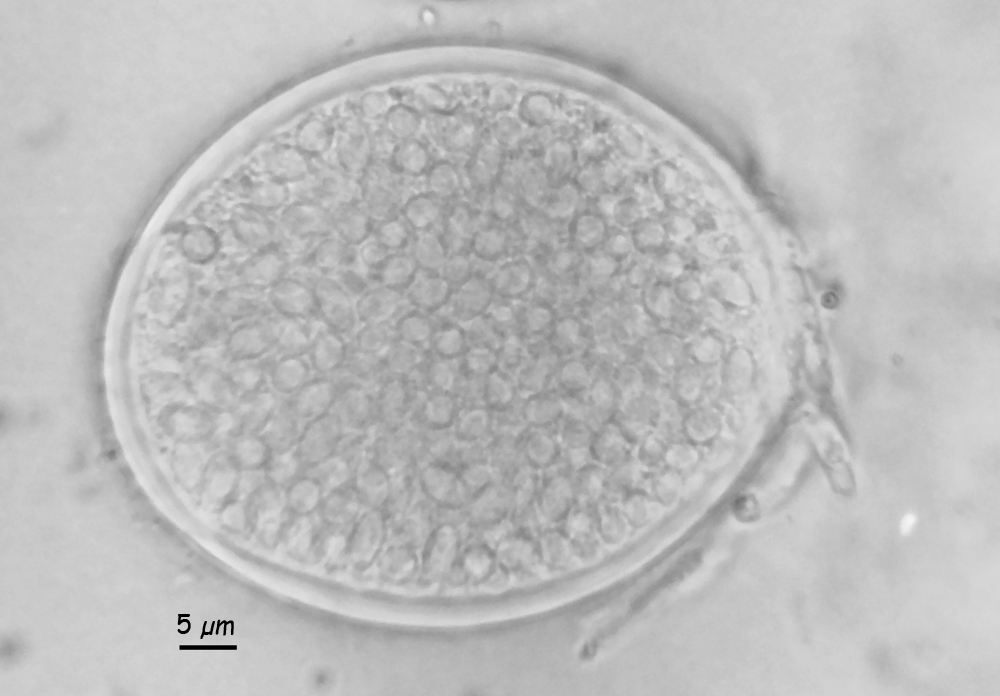 Asci ca. 59-70 x 55-59, vermutlich 512-sporig (jedenfalls deutlich mehr als 200 / 300, aber sicher weniger als 1000); Asci sehr deutlich dickwandig (sieht aus, als wären es zwei Wandschichten); kein Apikalapparat (wie bei Thelebolus 01); ein Ascus pro Fruchtkörper