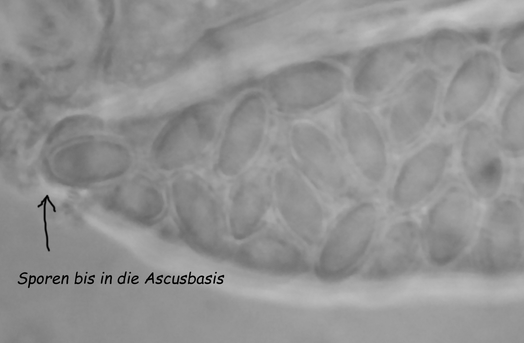 Sporen ca. 5,5-6,25 x 2,75-3,0 µm; Q = 1,8-2,2; (war schwer zu messen, da zu viele im Ascus übereinander/untereinander, aber keine Sporen frei)