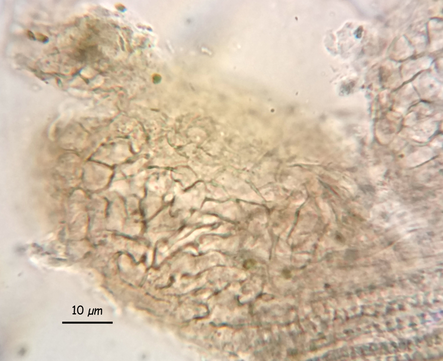 Excipulum etwas puzzleartig, Zellen bis ca. 8 µm Durchmesser.