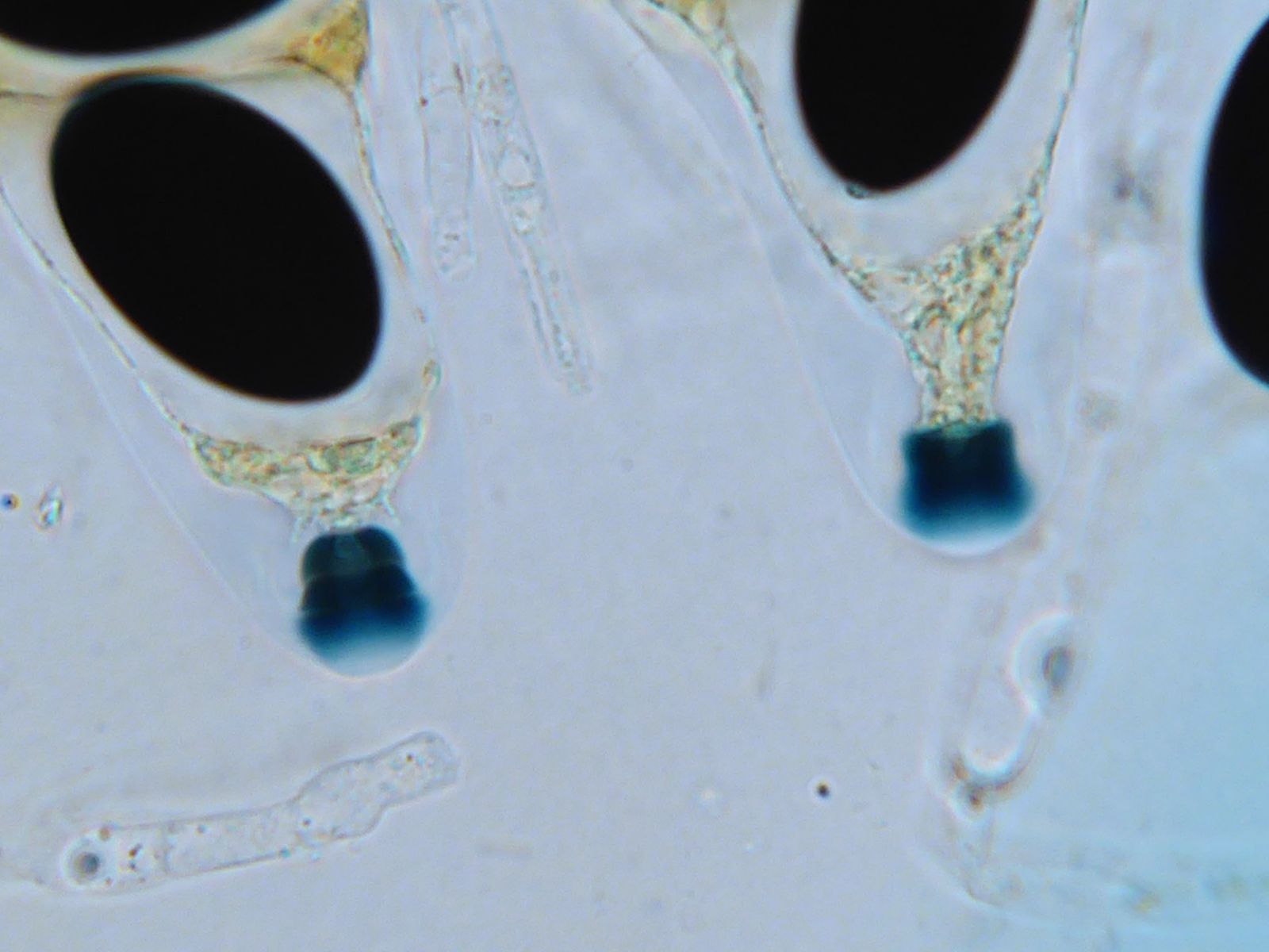 Das Blauen des Appikalapperates ist ein wichtiges Merkmal fast aller Arten der Gattung, nur wenige Arten verfärben dann weiter Richtung ziegelrot.