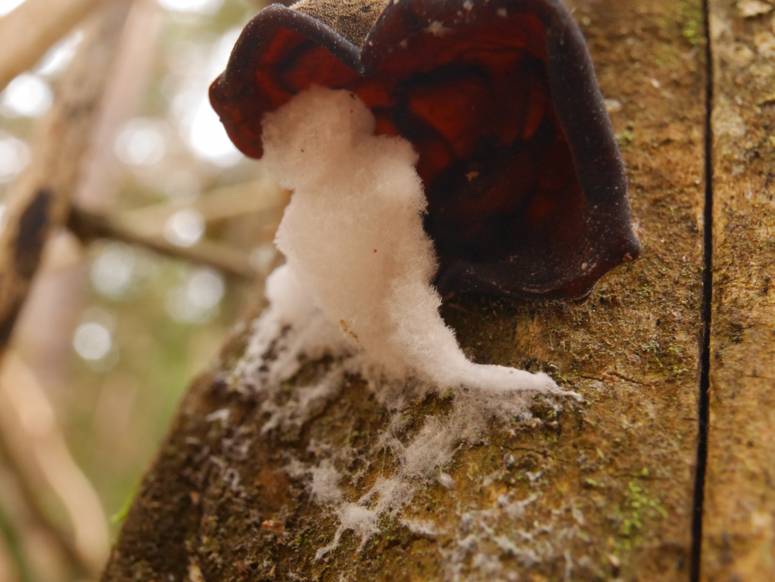 wer von Euch kann mit dem auf den beigefügten Fotos gezeigten watteähnlichen Belag auf Auricularia auricula-judae etwas anfangen? Handelt es sich dabei um Itersonilia perplexans?