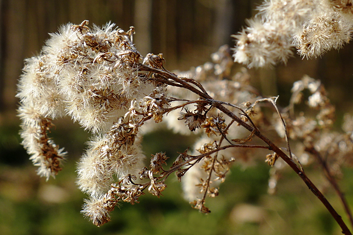 Reste von den "bösen" Goldruten (Solidago gigantea oder canadensis) schimmern schön im Sonnenlicht.