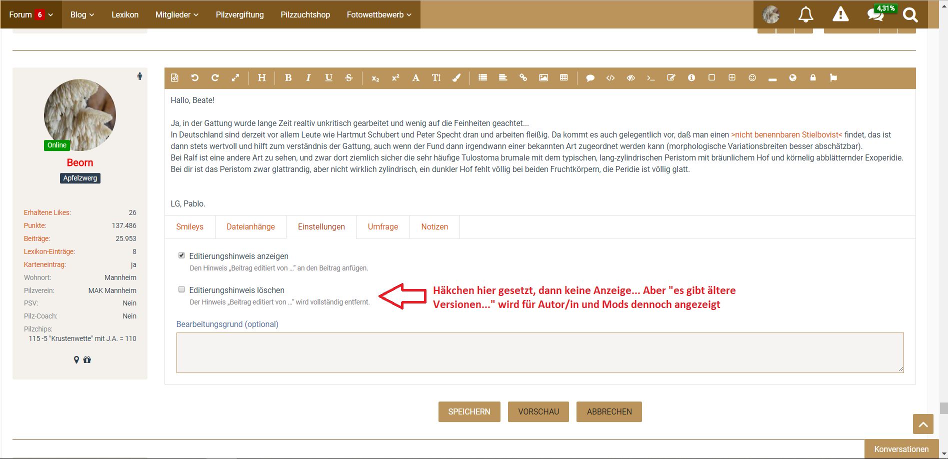 jede Zeile, jeder Buchstabe, jede Änderung zu einem Beitrag in diesem Forum wird vom Programm festgehalten.