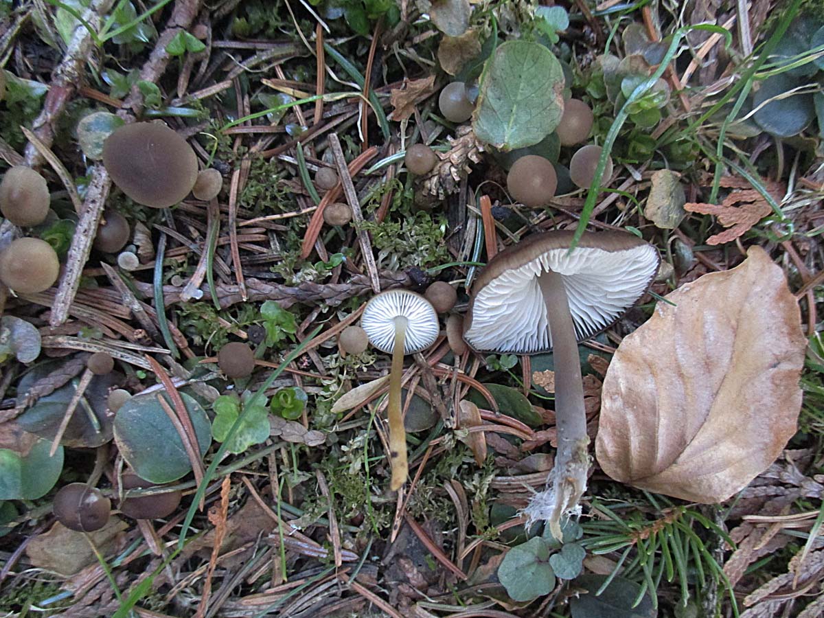 1. (Bilder 1 - 5) sind Fichtenzapfen-Helmlinge (Mycena strobilicola). Sie sollten nach Chlor gerochen haben.