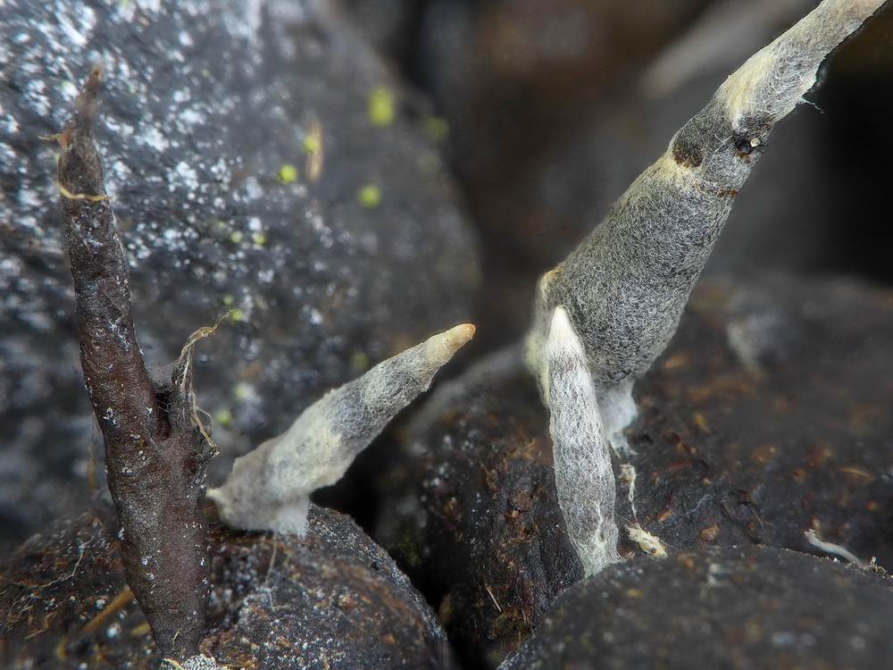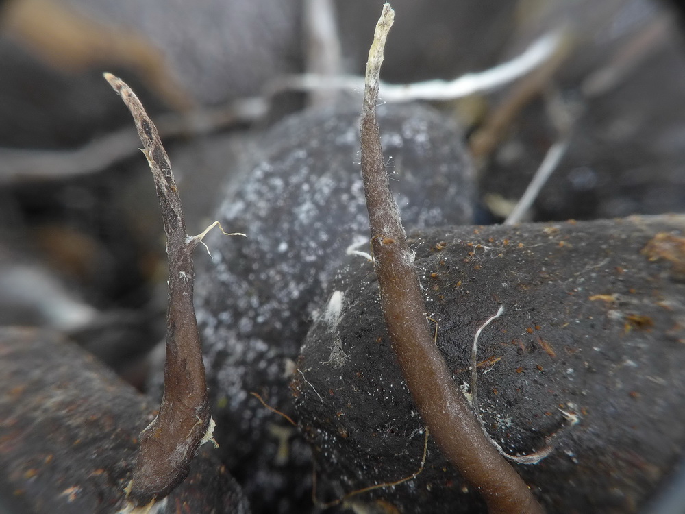 Auf Dung von Damwild wo sonst gar nichts wachsen wollte, wuchsen irgendwann weiße Mycelstränge unbekannter Zuordnung.