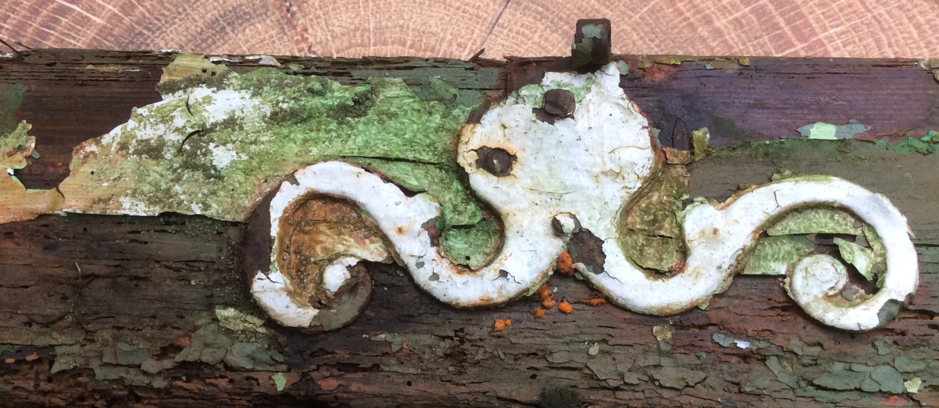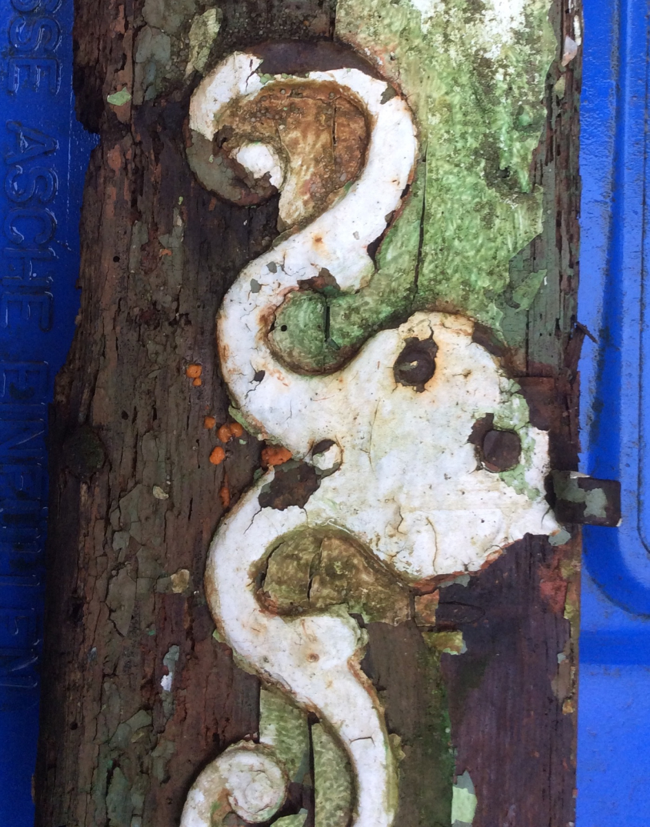 Als ich eben an ein paar Blumenpötten am Kellergeländer vorbeiging, fiel mir an einem alten, sehr besonderen Holzstück ein oranges Etwas auf. Das verwitterte Stück Tür mit dem wunderschönen Eisenbeschlag, der mich an eine Krake erinnert, hat sich pünktlich zum Frühling bunt geschmückt! ![]()