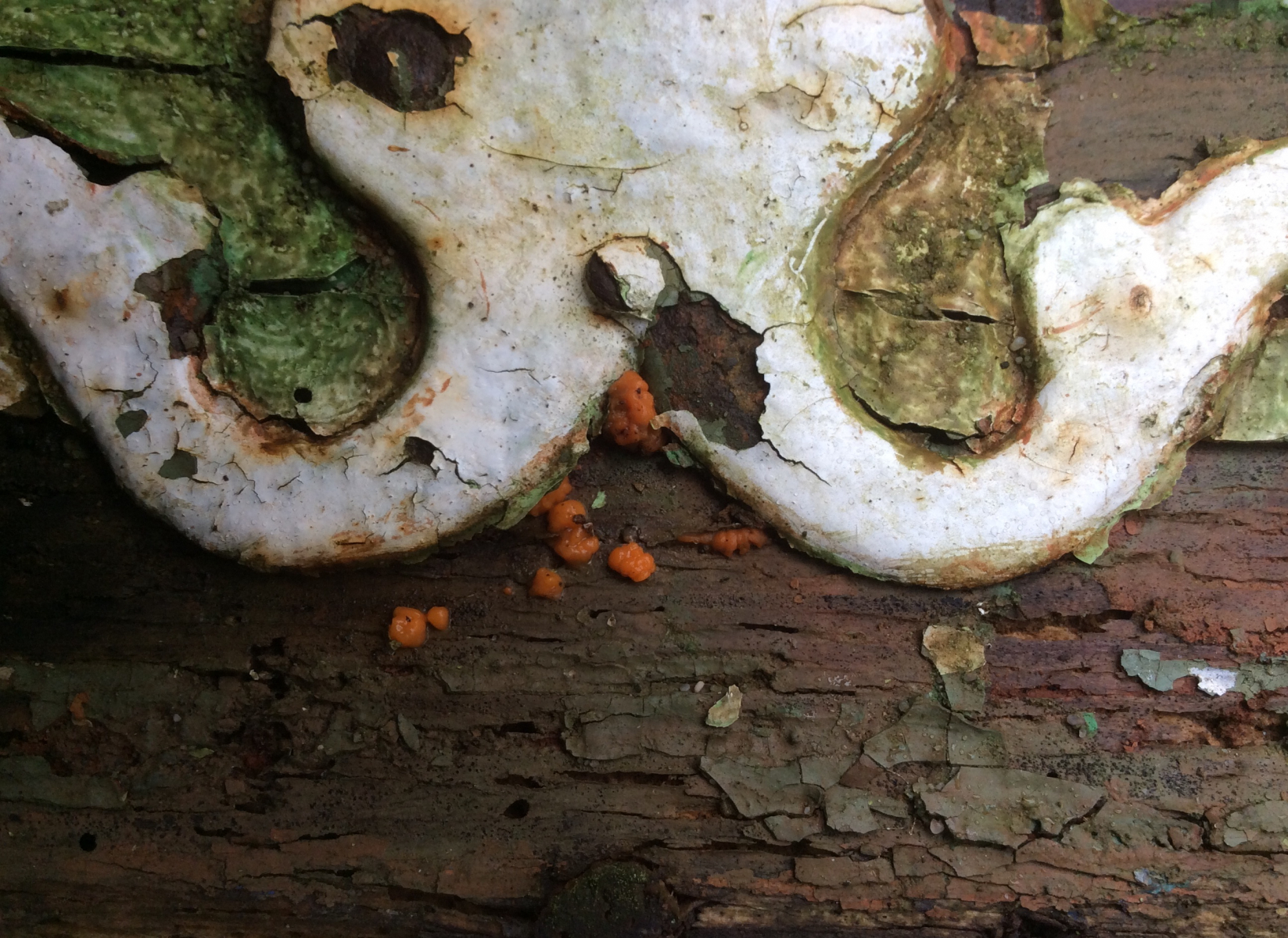 Sie sind winzig, von weniger als 1mm bis ca. 2mm Durchmesser, gallertig, kräftig orangefarben, unregelmäßig rundlich geformt, ineinander übergehend, etwas gefurcht/struktriert; beim Zerquetschen ergibt sich auch nichts anderes als gelboranger Gelee. ![]()