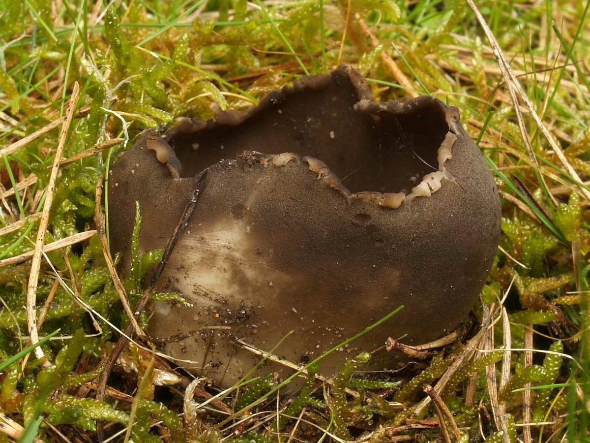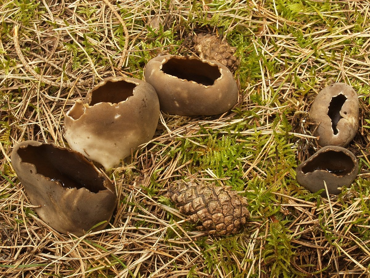 Helvella leucomelaena ist extrem unauffällig. Sie wächst seit ewigen Tagen im Garten meines Elternhauses (Schwarzkiefer, Kalkboden). Ich kenne sie vor allem aus Gartenhabitaten, aber selbst in meiner Schule (wo ich arbeite, nicht wo ich als Kind war, wächst sie bei gepflanzten Kiefern. Ich halte die Art auf Kalkböden für nicht selten, nur kann man in Gärten kaum nach ihr suchen, weil man nicht rein darf. Im Naturwald habe ich sie noch nicht gefunden. Allerdings muss ich manchmal da, wo ich weiß, dass sie wächst, dreimal hinsehen, bevor ich sie wiederfinde. Gerade im Gras sind die Becher oft fast nicht zu sehen. Hat man aber eine Fundstelle, kann man sie jedes Jahr finden - als Mykorrhizapilz ist sie sehr standorttreu.