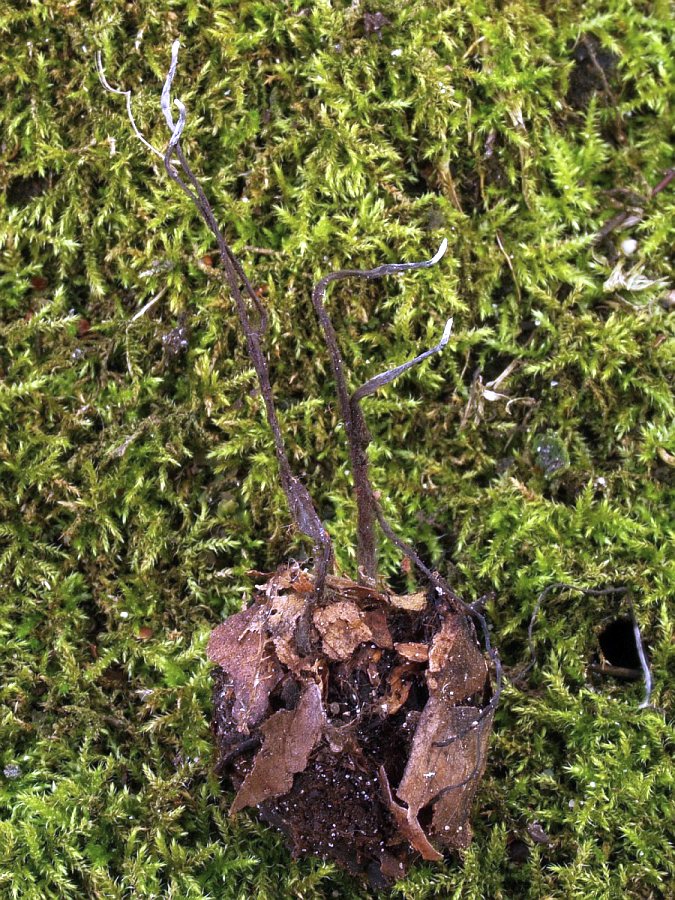 Bucheckern Holzkeule (Xylaria carpophila) war eher ein Zufallsfund in Buchenlaubstreu