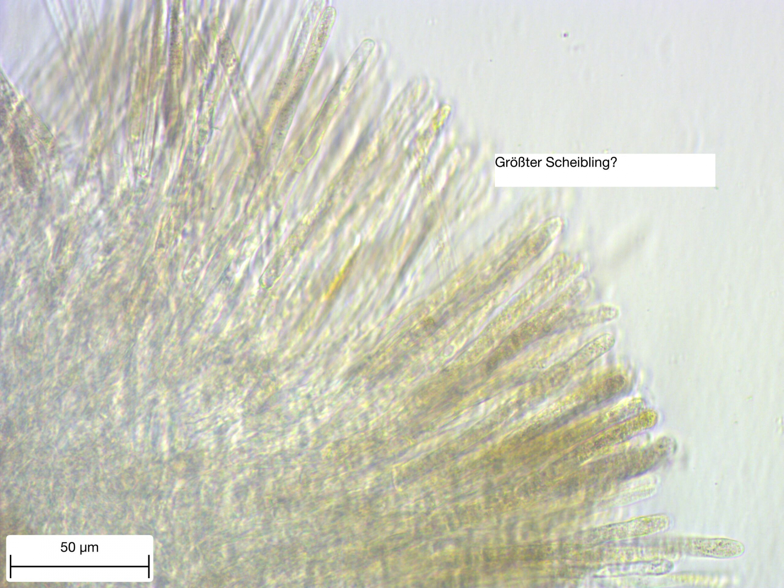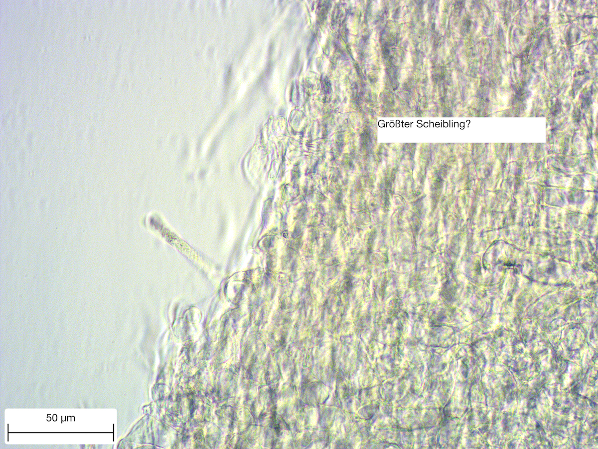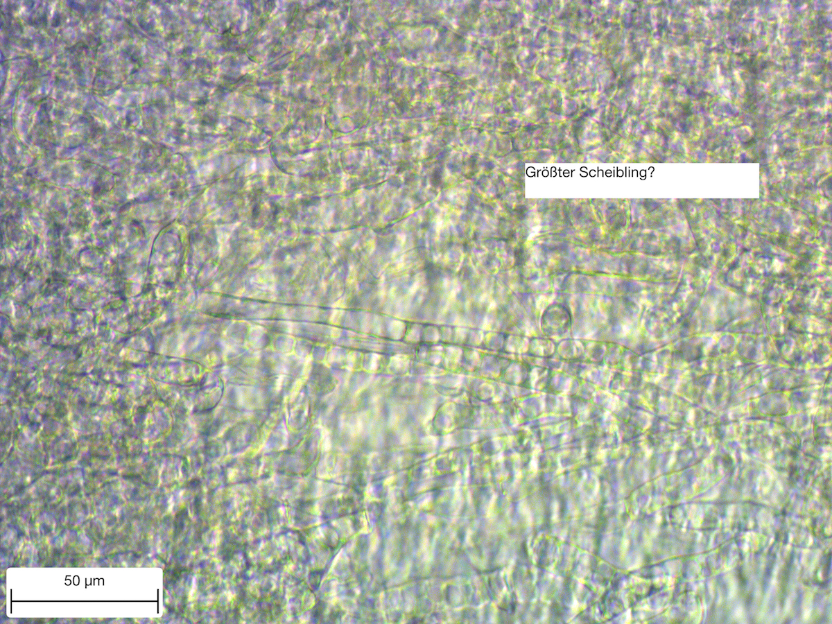 natürlich keine Morcheln - aber zufällig - oder aus Versehen habe ich immerhin ein paar Schlauchpilze gefunden. Solche hatte ich noch nie. Beim Blättern bin ich auf den Größten Scheibling gekommen. Was sagt Ihr? Ich hab ein kleines Stückchen abgeschnitten und unters Mikroskop gelegt. Leider gab im ganzen Pilz überhaupt nichts Spannendes. Keine einzige Spore, keinen Ascus, oder habe ich etwas übersehen? Enttäuschend - aber da ich nur ein kleines Stückchen abgeschnitten habe, gibt es in ein paar Tagen vielleicht Sporen.