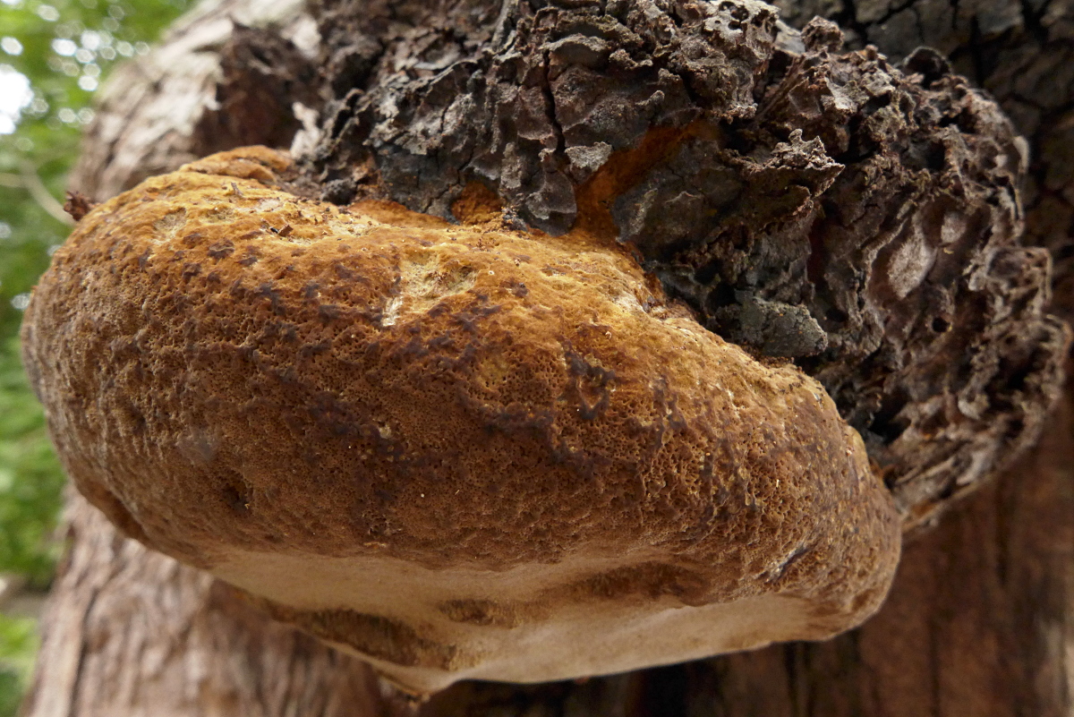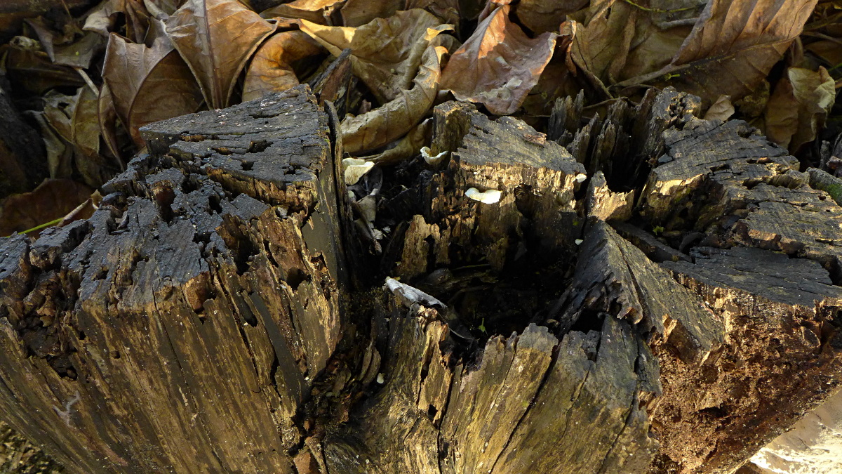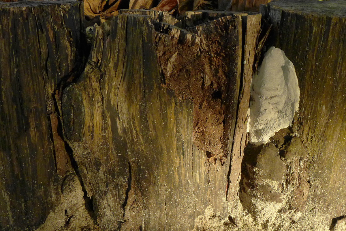 Von der Porlingen ist jetzt so gut wie nichts mehr zu sehen - und das verbliebene Holz ist extrem löchrig/morsch geworden.