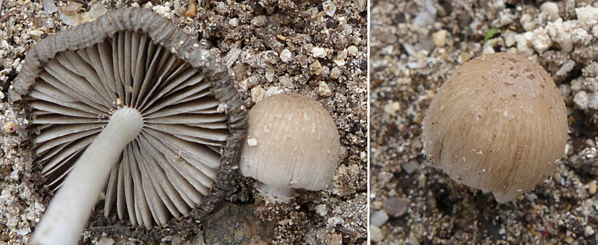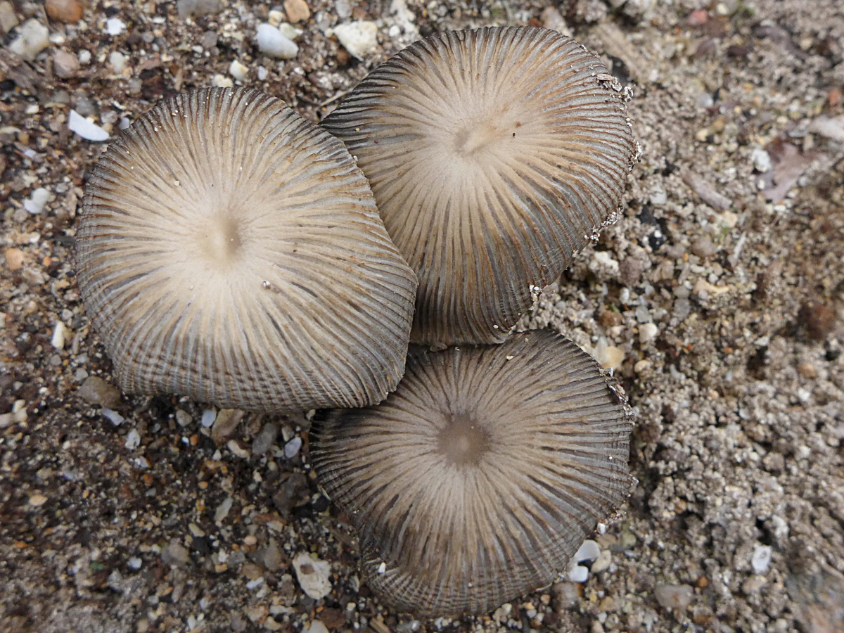 Vereinzelt kann man nach Regen vor den Hölzern im Sand kleine Tintlinge entdecken.