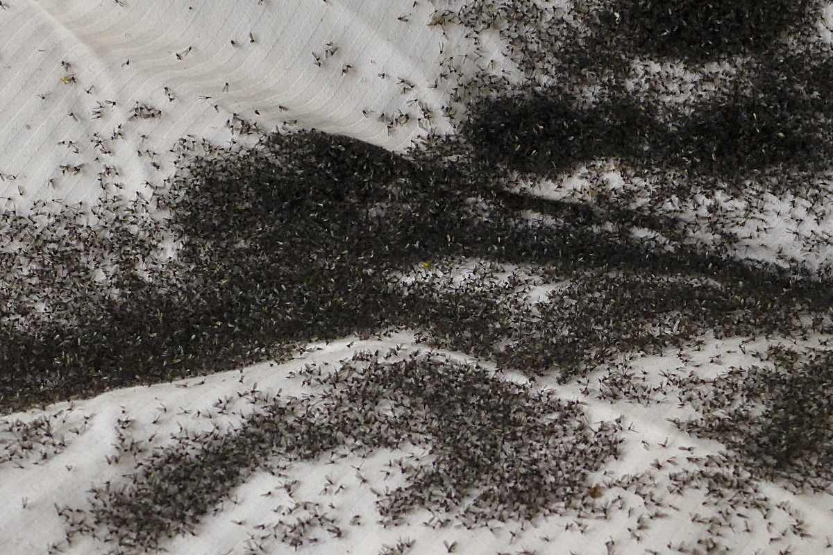 Zur Zeit sieht es so aus, dass die Küstenregionen weniger betroffen sind, die Tiere sollen sich jetzt eher im Wald aufhalten (... ja ... leider ... meine Favolaschia-Fotografiererei hatte auch einen pusteligen Unterarm zu Folge).