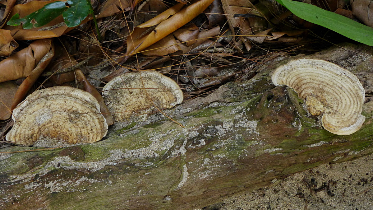 Die einzigen Pilze, die ich jetzt sah sind cf. Neonothopanus hygrophanus und cf. Perenniporia tephroleuca ... alles nicht so fotogen.