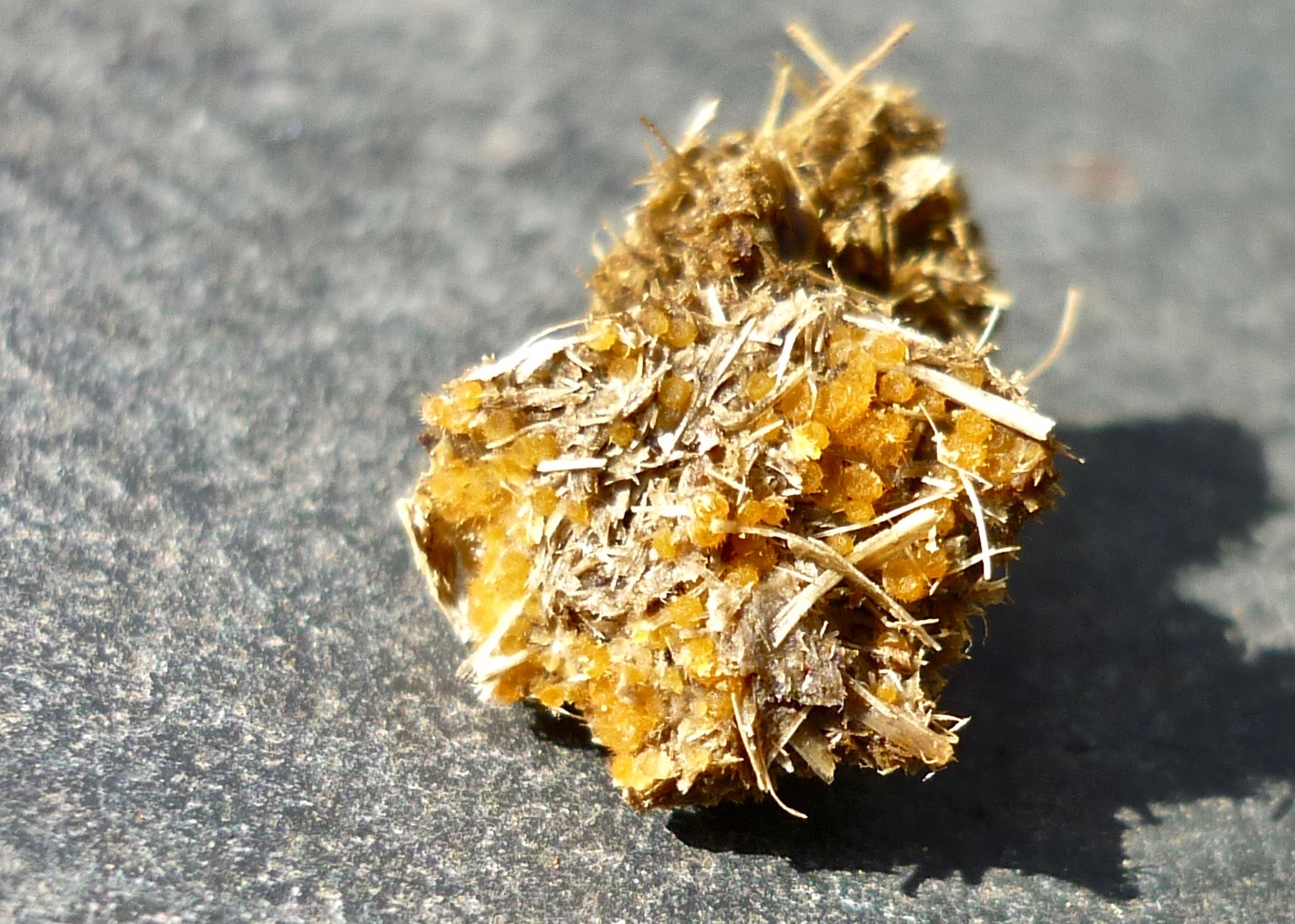 Gestern habe ich ein Fitzelchen Kuhdung mitgebracht, das über und über mit gelblichen Pilzen übersät war. Nach mühevollen Versuchen den Krümel zu fotografieren, habe ich mir eine Stereolupe bestellt. Da erkennt man wenigstens was auf dem Objektträger liegt. Da ist es wenigstens möglich, den Pilz makroskopisch einigermaßen vernünftig zu beschreiben.