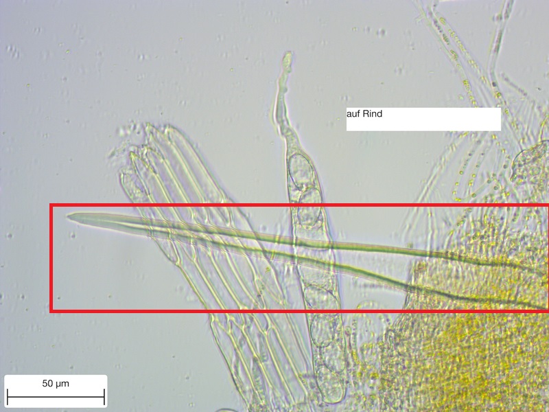 Ganz typisch für die Gattung sind die Squamufolien, die sich am Perithecienhals befinden und die durch das Quetschen auch mal abrutschen können.