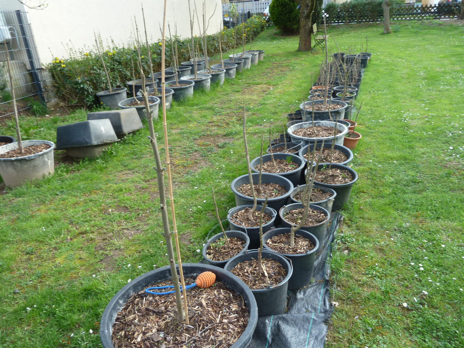 etwa 50 Paulownia zum Einpflanzen bereit. Heute wollte ich den Anhänger beladen, um die Paulownia auf den Acker zu bringen. Aber was sieht meine Frau da Schönes auf dem Rindenmulch sprießen, den wir im vergangenen Herbst reichlich aufgebracht haben?!?
