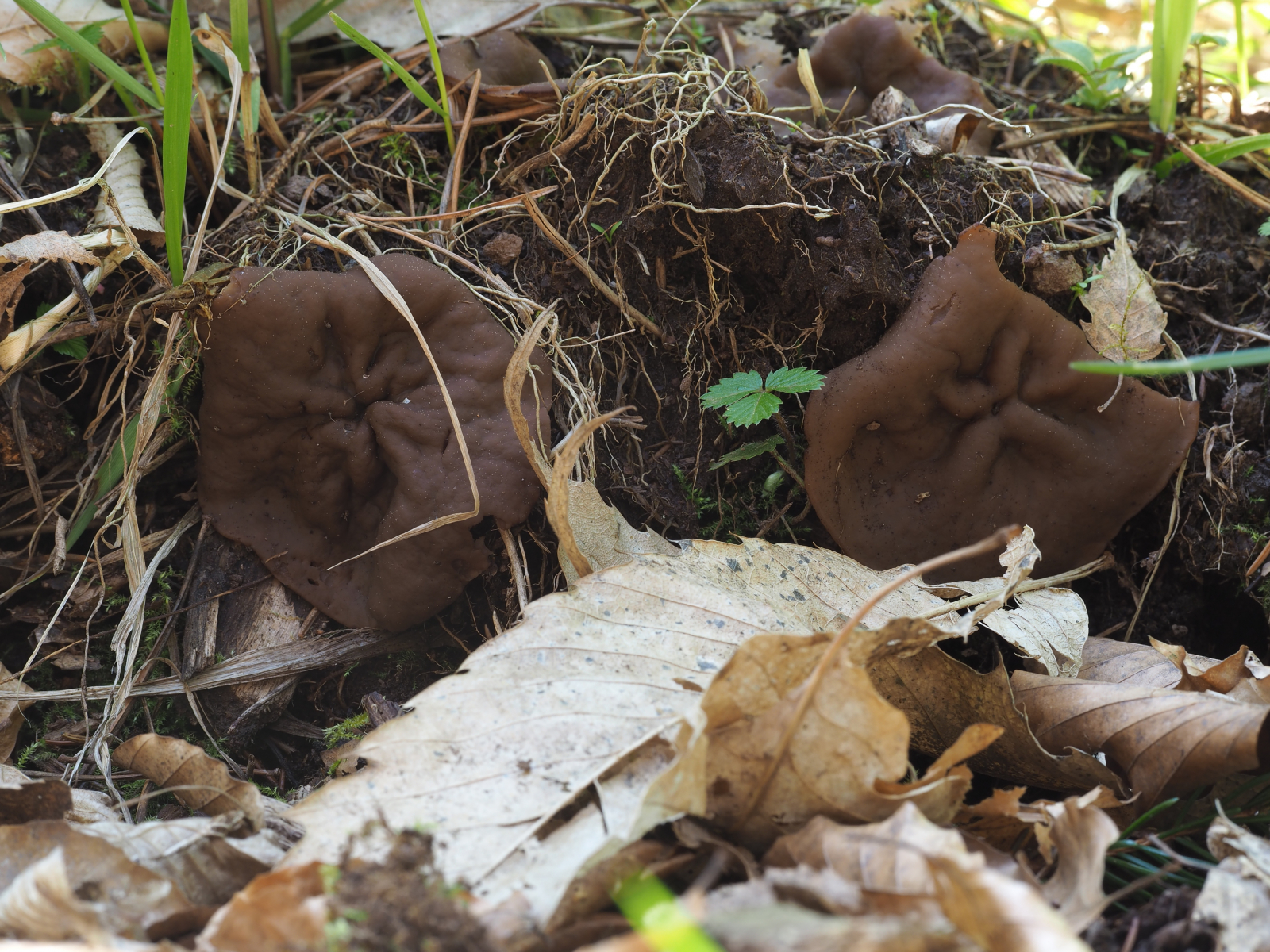 heute bin ich einem gemulchtem Jogging Pfad im Wald gefolgt, in der Hoffnung vielleicht Spitzmorcheln zu finden, am Rand fand ich zu meiner Überraschung was genauso gutes, dort wuchsen bestimmt 10 Scheibenlorchen, welche genau kann ich nicht sagen, vielleicht kann da ja wer licht ins dunkel bringen.