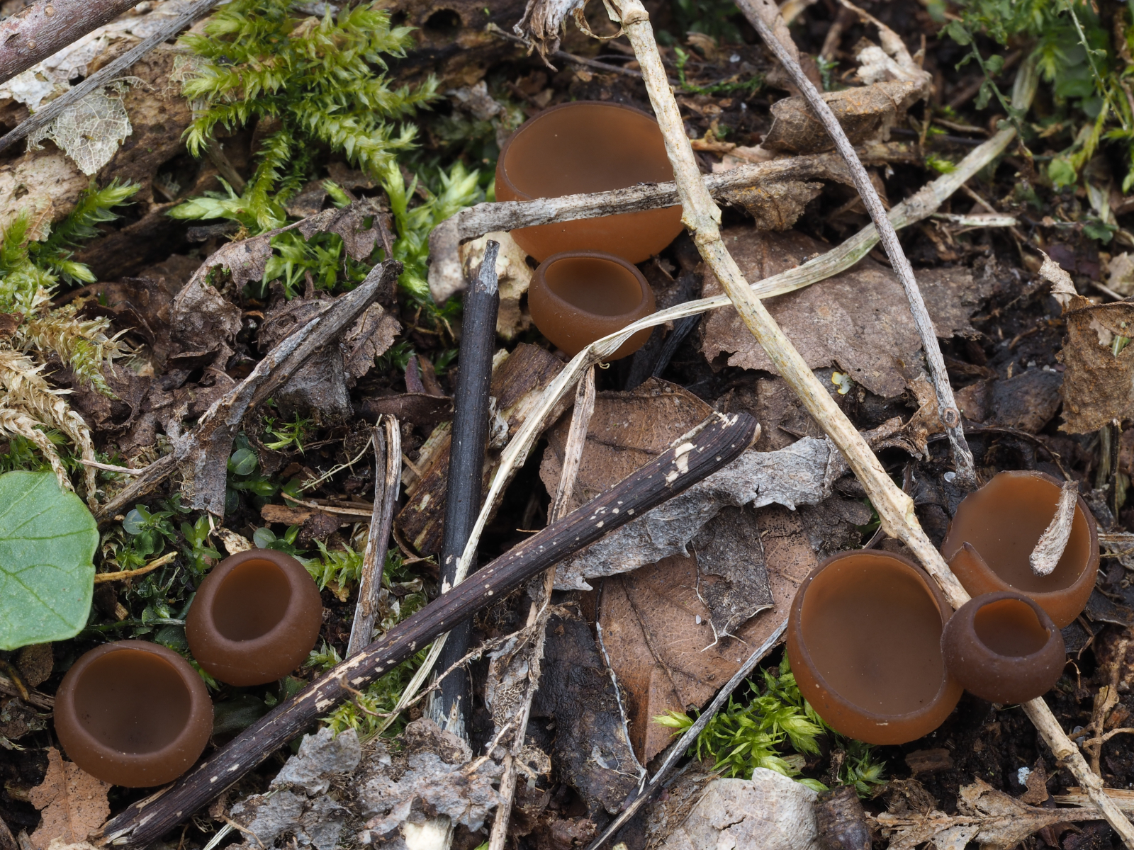 Vor 2 Wochen war ich dort schon mit Peter (Melone) schauen, und wir fanden riesige Anemonenbecherlings- (Dumontinia tuberosa) Vorkommen.