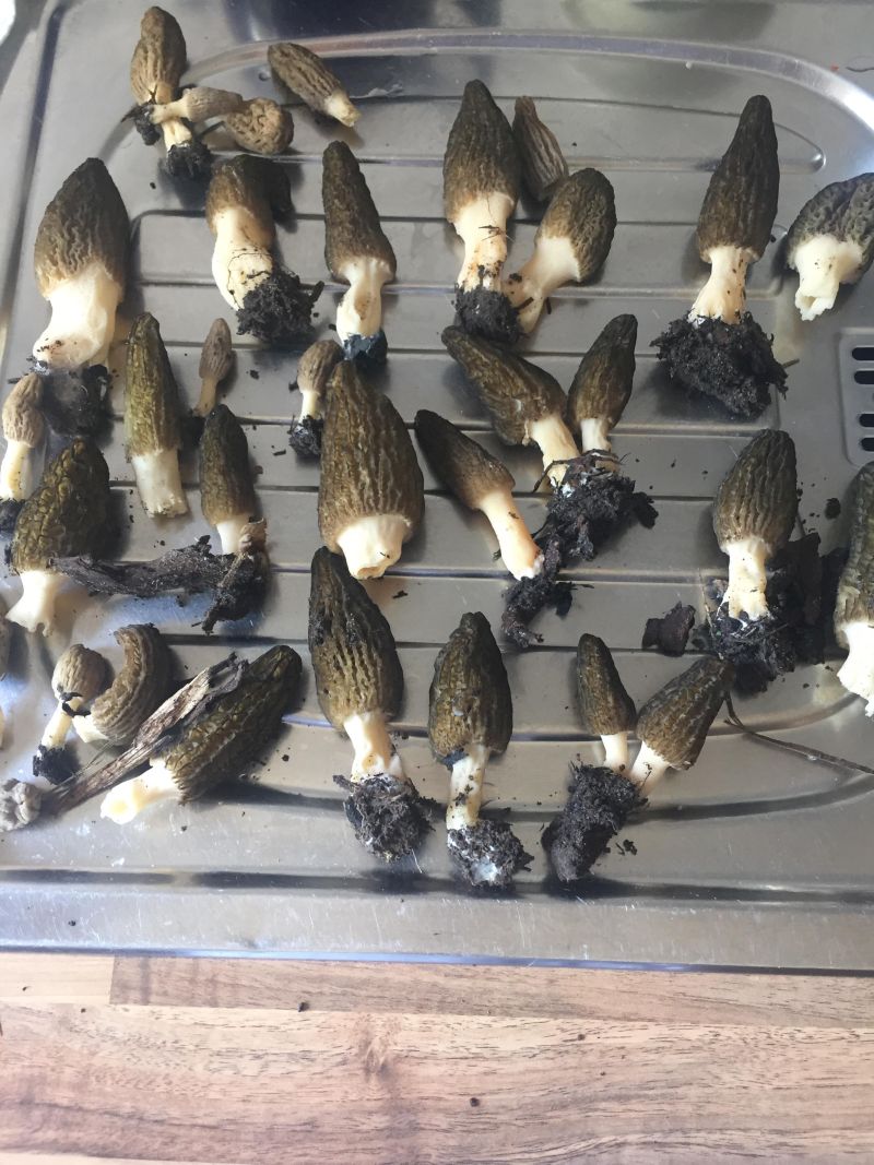 endlich war es mal soweit, dass ich eine ausreichende Menge an Spitzmorcheln (allerdings auf Rindenmulch gewachsen) gefunden habe.