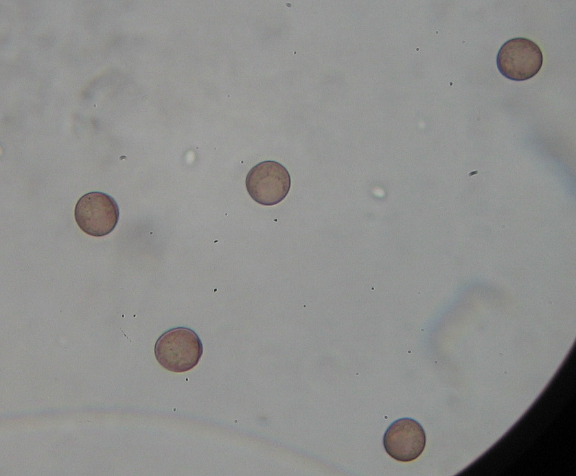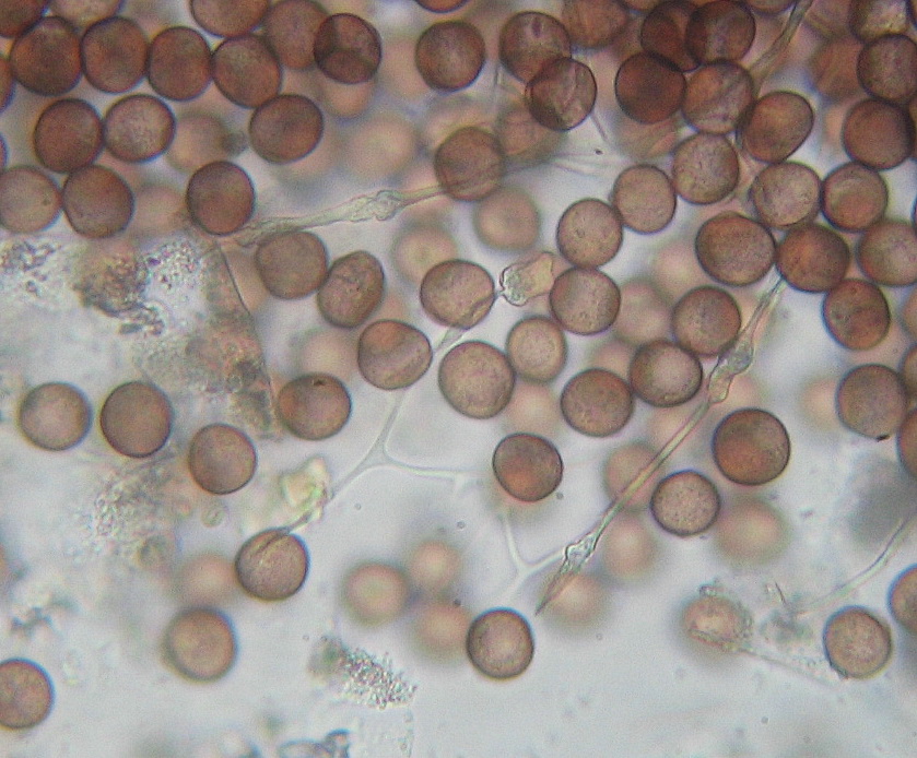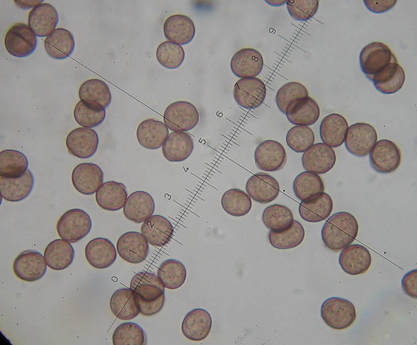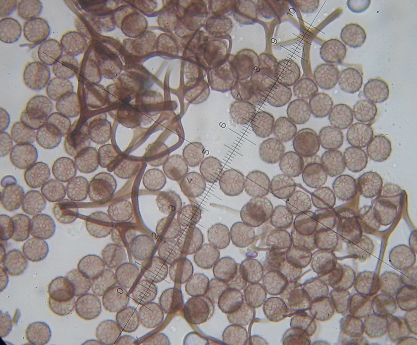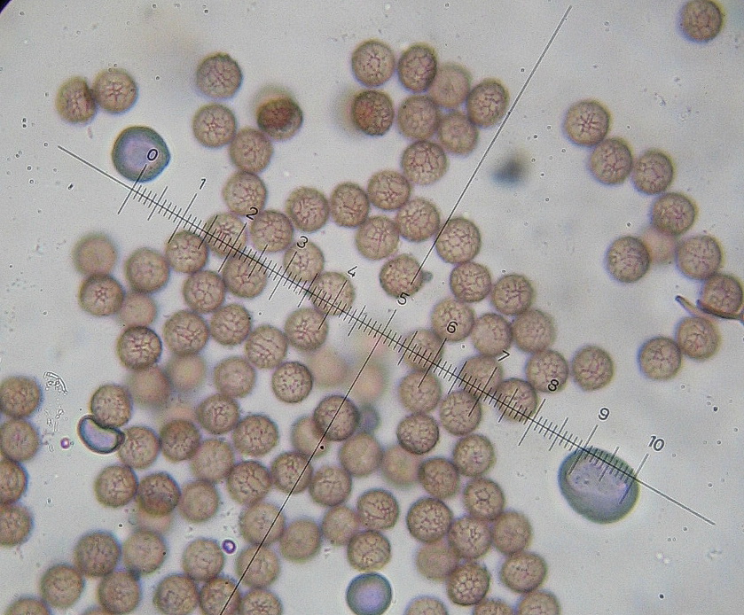 Unterm Mikro gab es dann die rundlichen- kartoffelförmigen, rauhen Sporen 6-10µ,