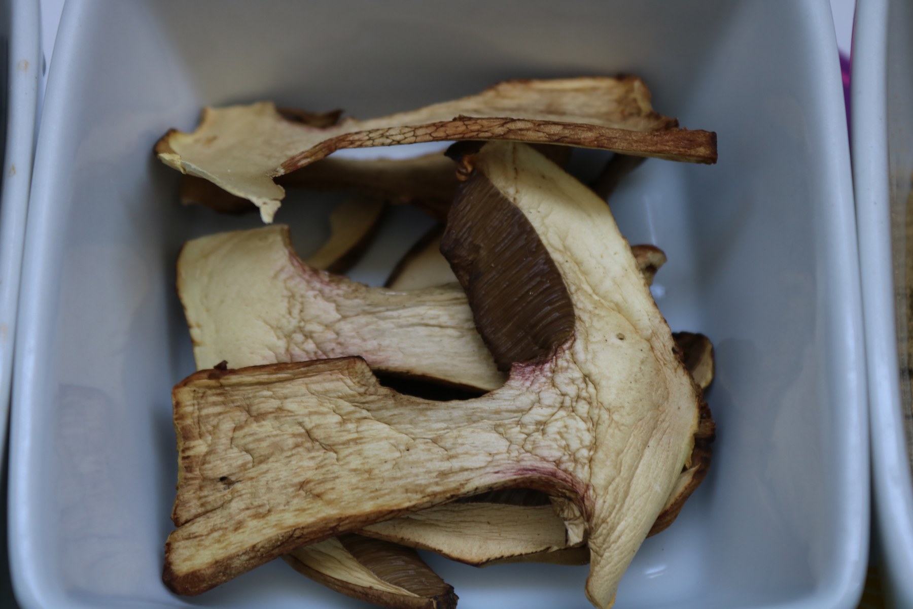 Das mit Sandröhrlingen hat sich übrigens nicht so ganz bestätigt. Sie entwickeln schon ein gutes Aroma beim Trocknen, sind aber doch nicht ganz so gut wie Steinpilze. Und auch viele andere Röhrlinge entwickeln ja etwas mehr Aroma beim Trocknen.