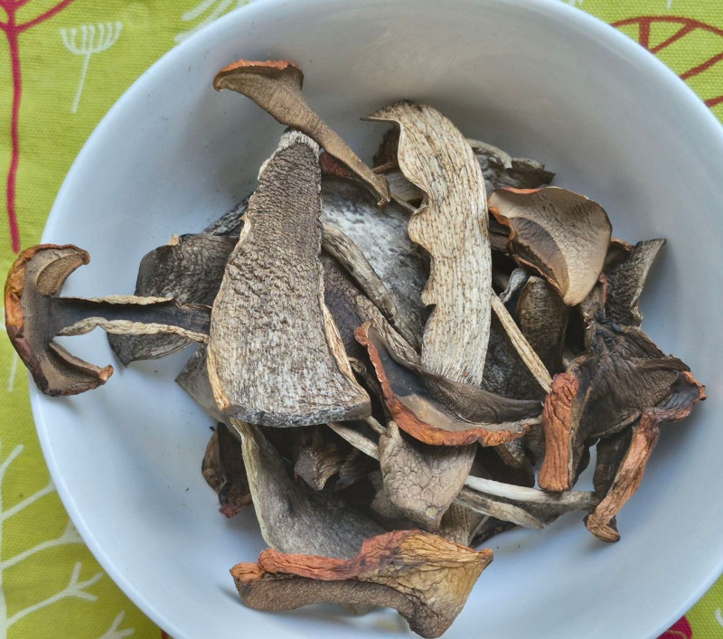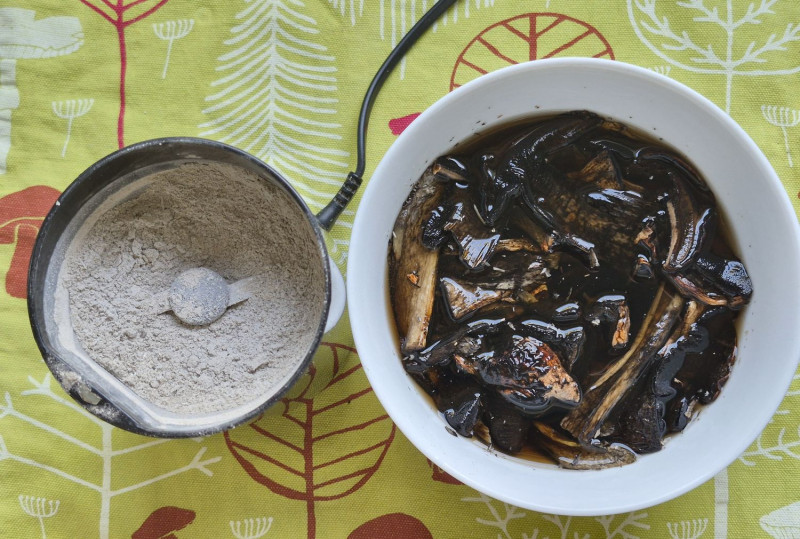Teils eingeweicht, teils zu Pilzpulver verarbeitet: