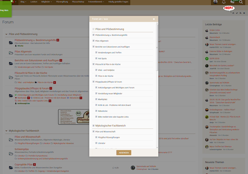 dann gucke ich mir rechts unten die neuen Themen allg. an, ob mich da was besonders interessiert, bzw. die neuen Beiträge zu bekannten "Dauerthemen"