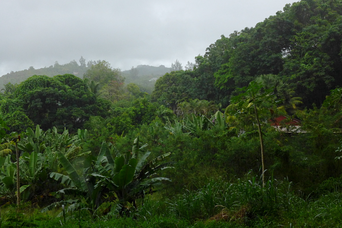 Hier auf dem Foto sieht man ein Dach, aber eigentlich sind fast überall- relativ neue - Häuser "versteckt". Ich stehe auf einer kleinen asphaltierten Straße, die am Waldrand vorbei geht und nach nicht allzu langer Strecke wieder auf eine Hauptstraße mündet. Hier war später Nachmittag nach 2 mehr oder weniger verregneten Tagen, es "dampft" gerade ...