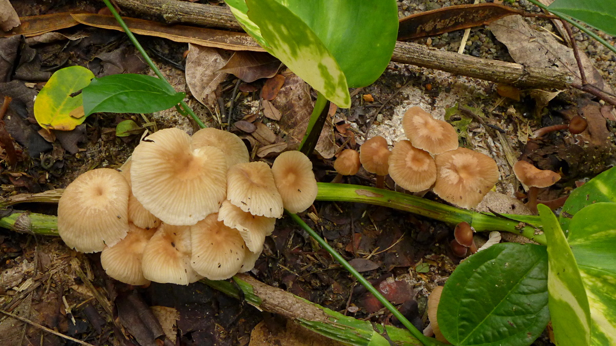 Und gleich noch ein paar Faserlinge hinterher, auf einem abschnittenen Palmenstumpf, auf der Schnittkante.