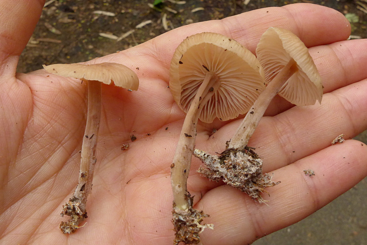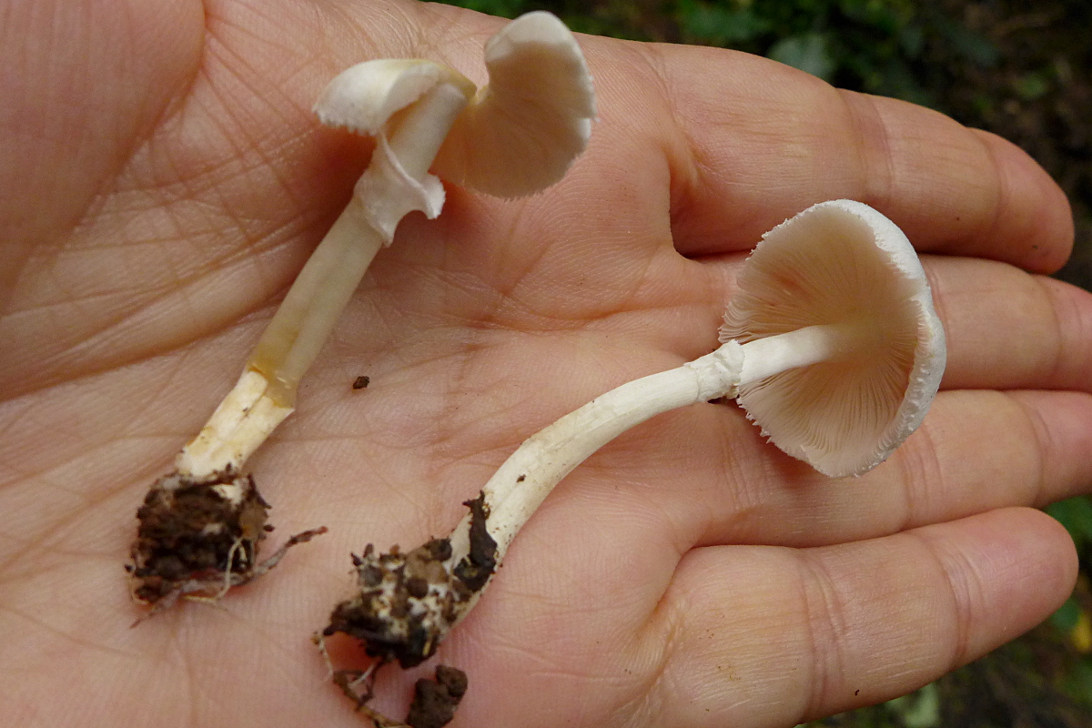 Auch hier waren die Pilzchen sehr hell und dunkelten bei Reife (auch schon vor Ort sichtbar) auf der Oberflächen und an den Lamellen nach, Sporenpulver ist überprüft.