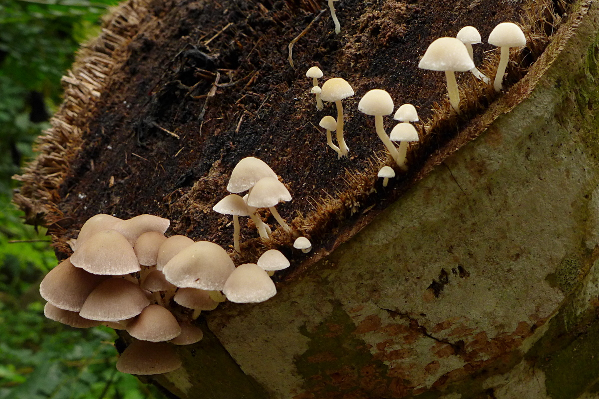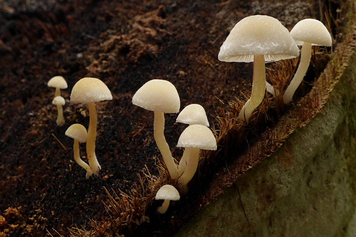 Wenn es mal über mehrere Tage öfter geregnet hat und die Sonne sich länger hinter Wolken versteckt und die Feuchtigkeit nicht sofort wieder in die Luft übergeht, dann steigt die Wahrscheinlichkeit, kleine frische Pilzchen anzutreffen.