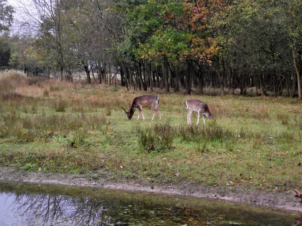 Das rotwild habe gar keine angst. Hier im holland ist es verboten zu jagen.