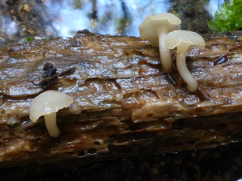 Aber ich hätte auch besser hingucken können, bei dem geschickt drapierten Pilzchen rechts oben sieht man noch ein Stück des Holzes an der Stielbasis.