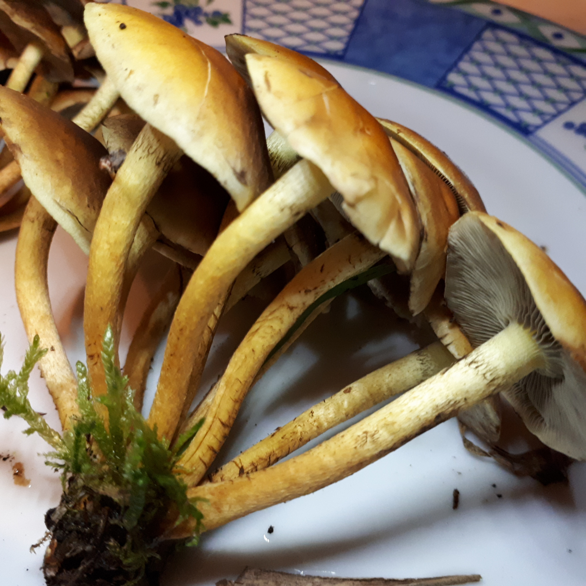 handelt es sich bei den folgenden Pilzen um grünblättrige Schwefelköpfe? Meine Vermutung stützt sich ausschließlich auf Internet-Recherchen und ist nur eine erste Idee.