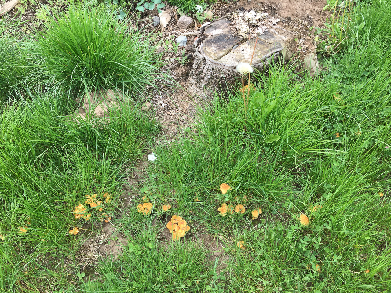 Fundort: An einem Baumstumpf und großflächig darum verteilt.