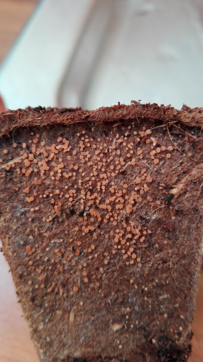 heute brauche ich mal wieder eure Hilfe: auf einem Saattöpfchen von Billa, in dem die mitgelieferte Erde und Kressesamen sind, wachsen anstatt Kresse überall kleine orangegelbe Becherlinge, deren Rand wellig wirkt, möglicherweise haarig ist. Durchmesser ca. 1 mm.
