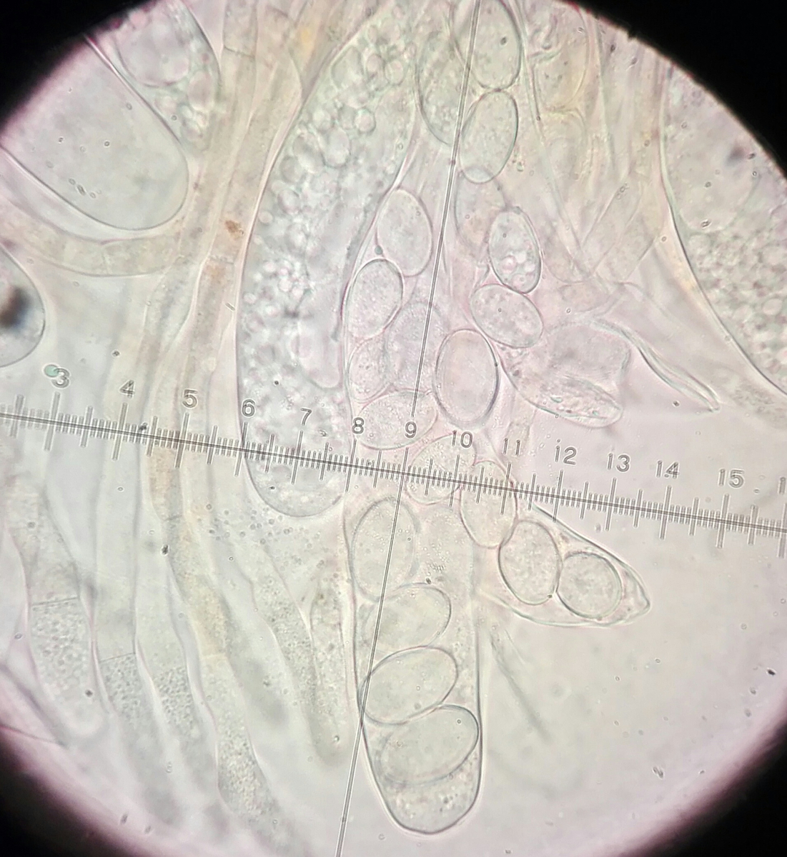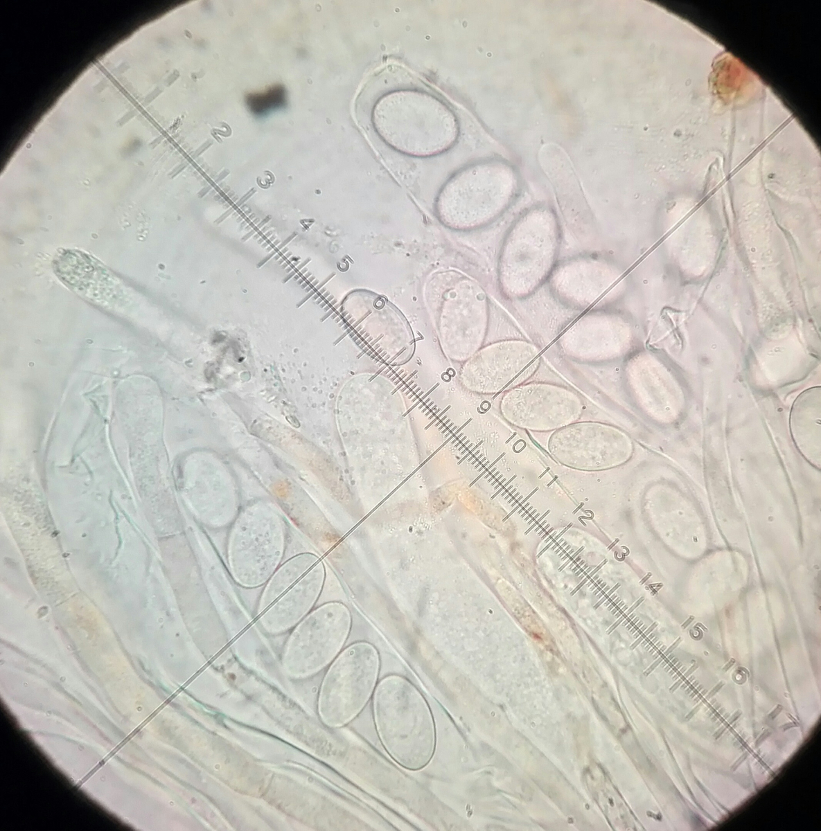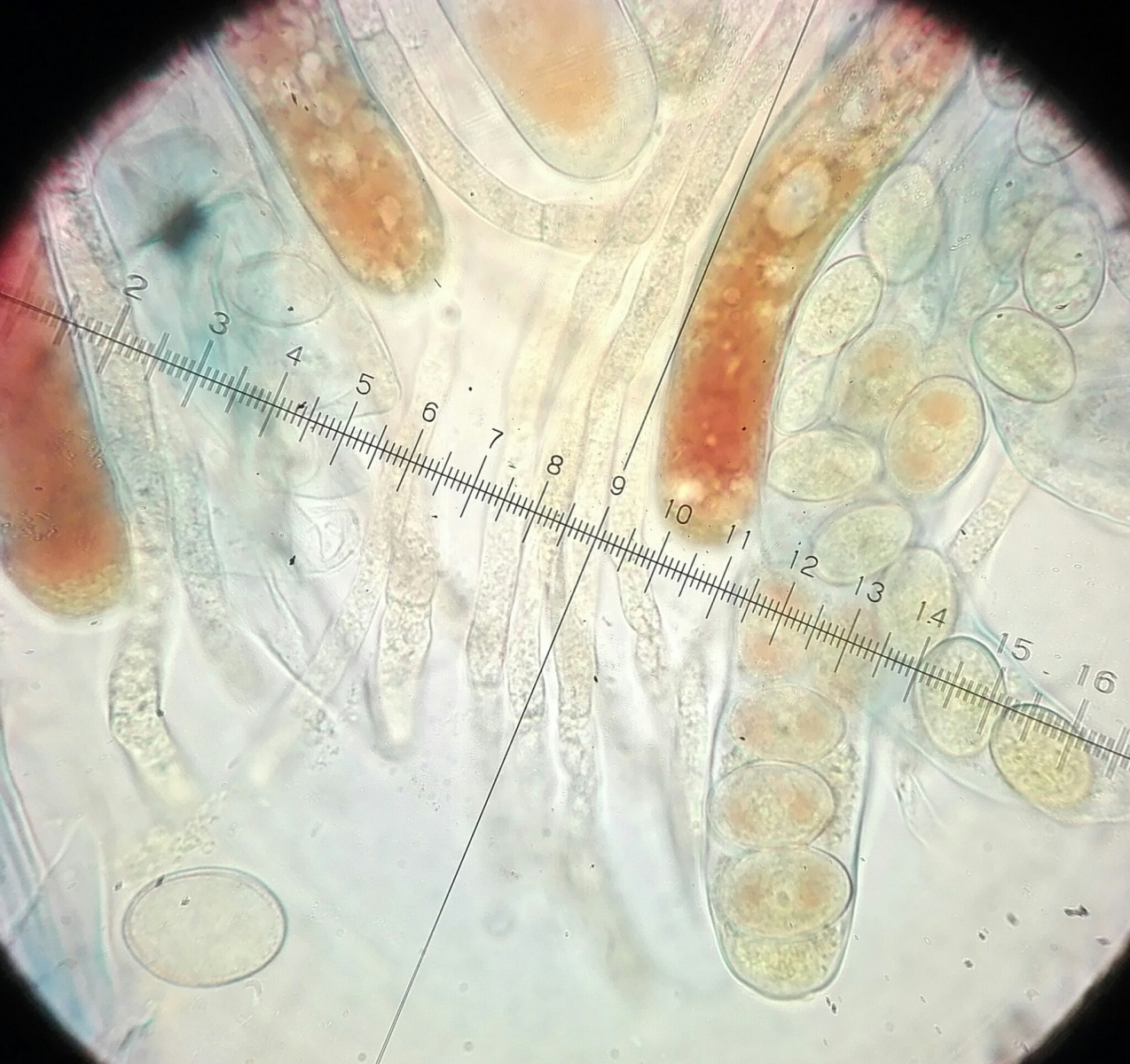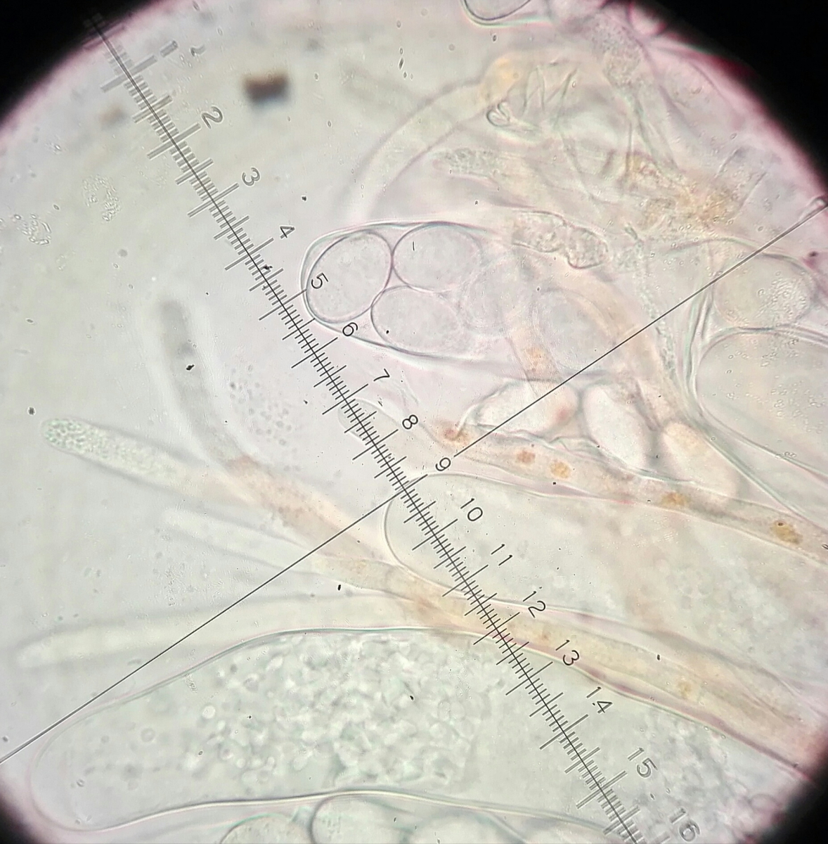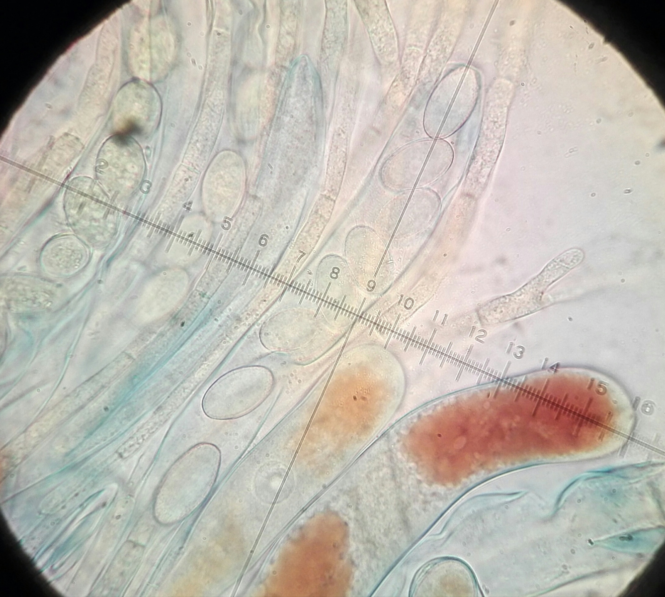 Ich habe kurz mikroskopiert, aber noch nicht gemessen. Die Fotos sind in Wasser und dann in Lugol. Leider nur Handy-Fotos...