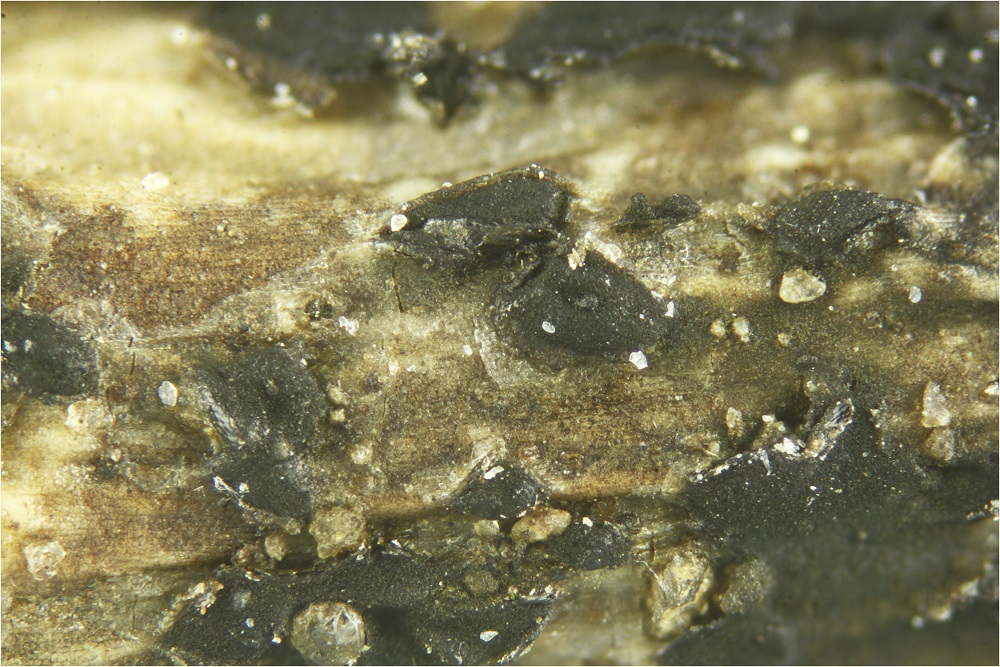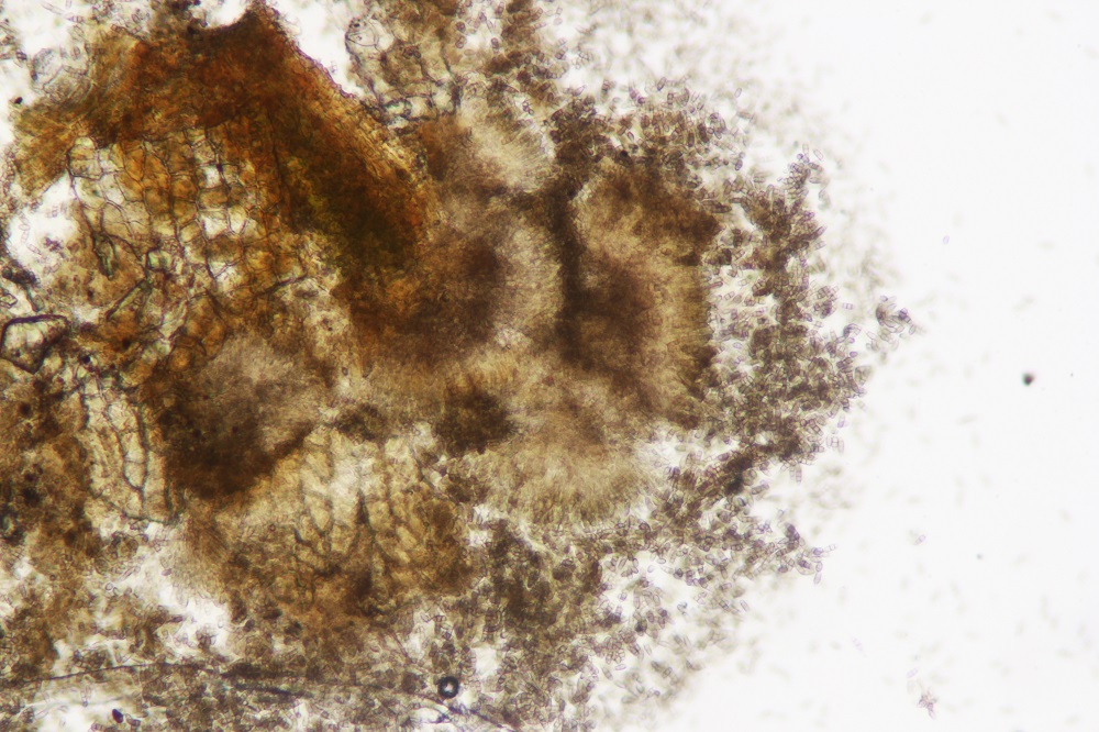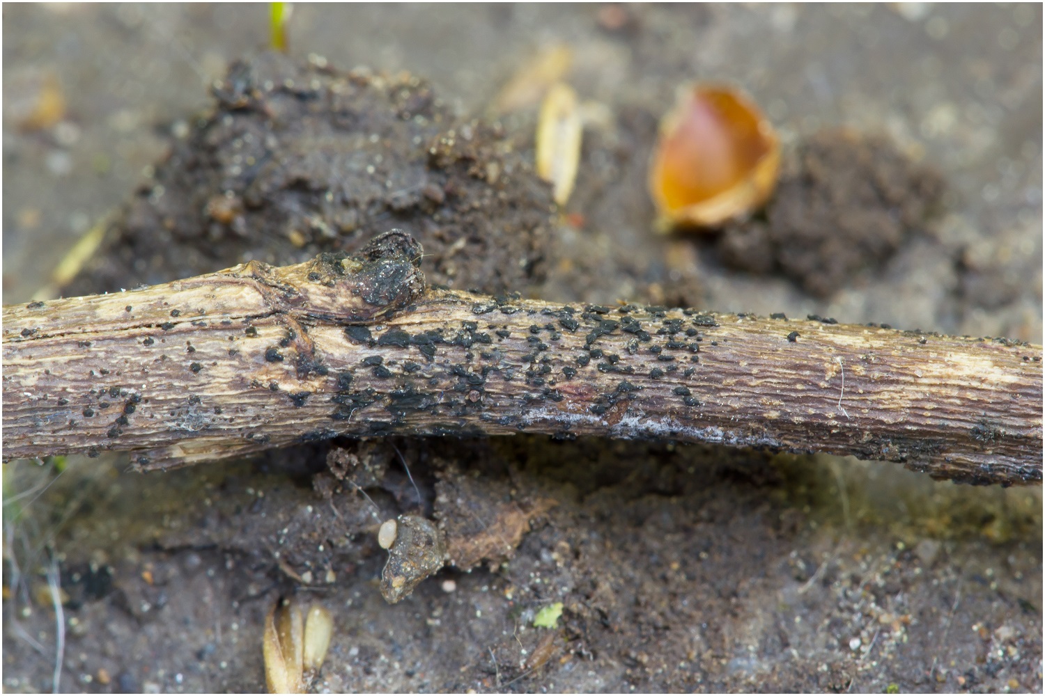 Diese Kügelchen haben sich unter dem Mikroskop als ein Seimatosporium (Anamorphe von Discotroma) entpuppt.