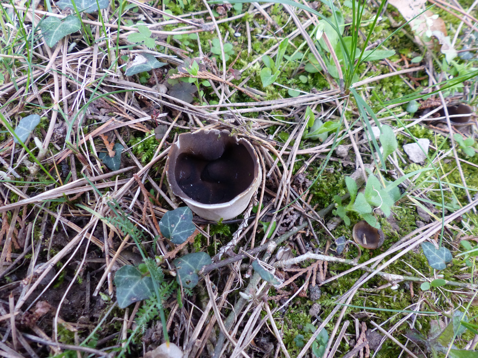 Farbe: innen tief dunkelbraun, außen weiß bis aschgrau