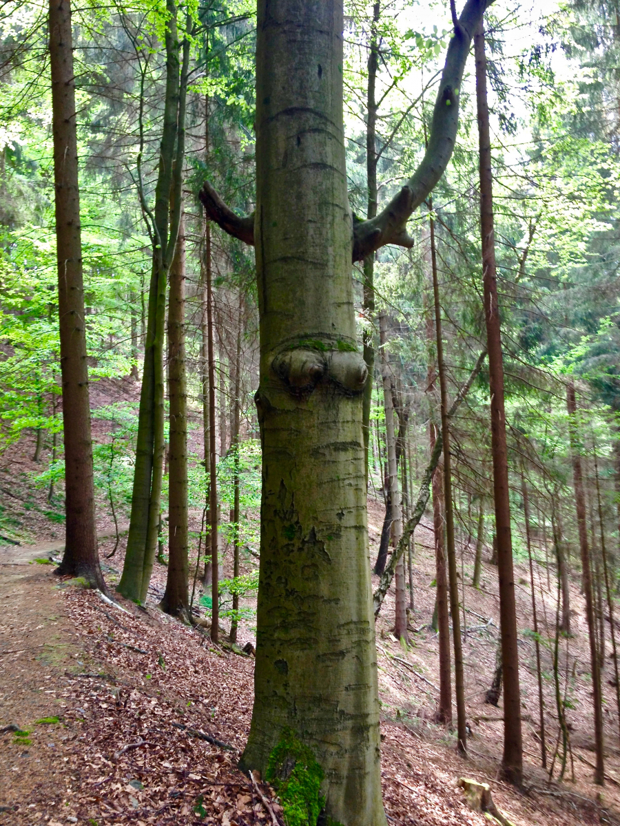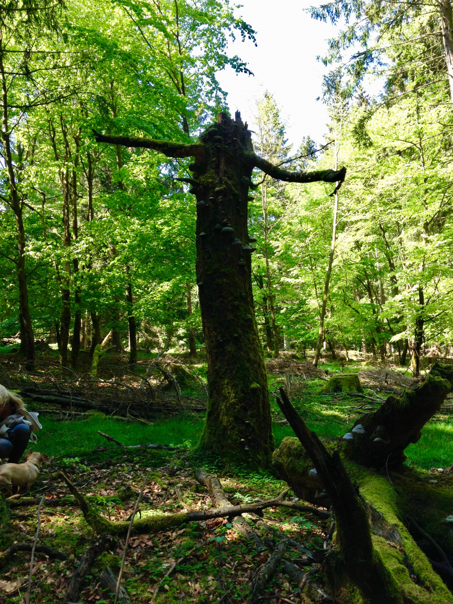Eine zunderschwammlose Buche guckte streng. Vermutlich um uns vor dem heranziehenden Unwetter zu warnen.
