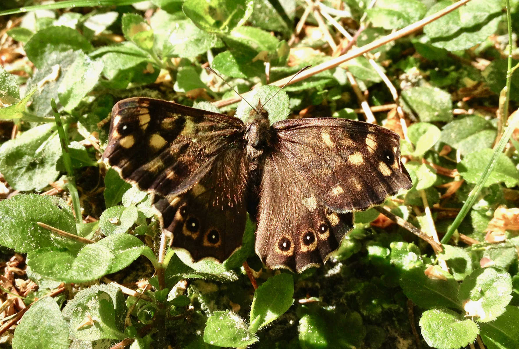 Ein Schmetterling wärmte sich in der Morgensonne. Der Mensch, der ihm n´mit dem Handy auf die Pelle rückte war ihm egal. Ich glaube, er heißt Waldbrettspiel.