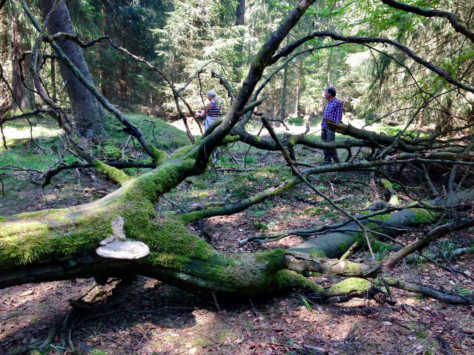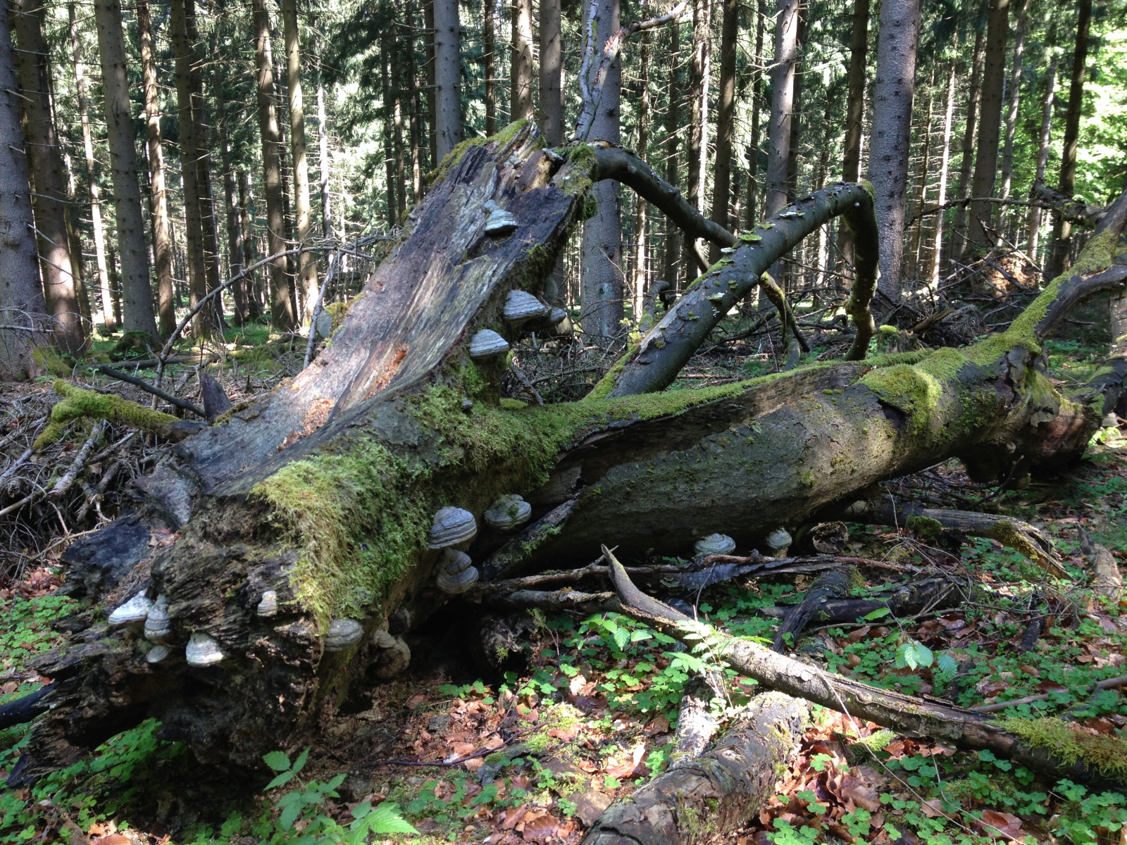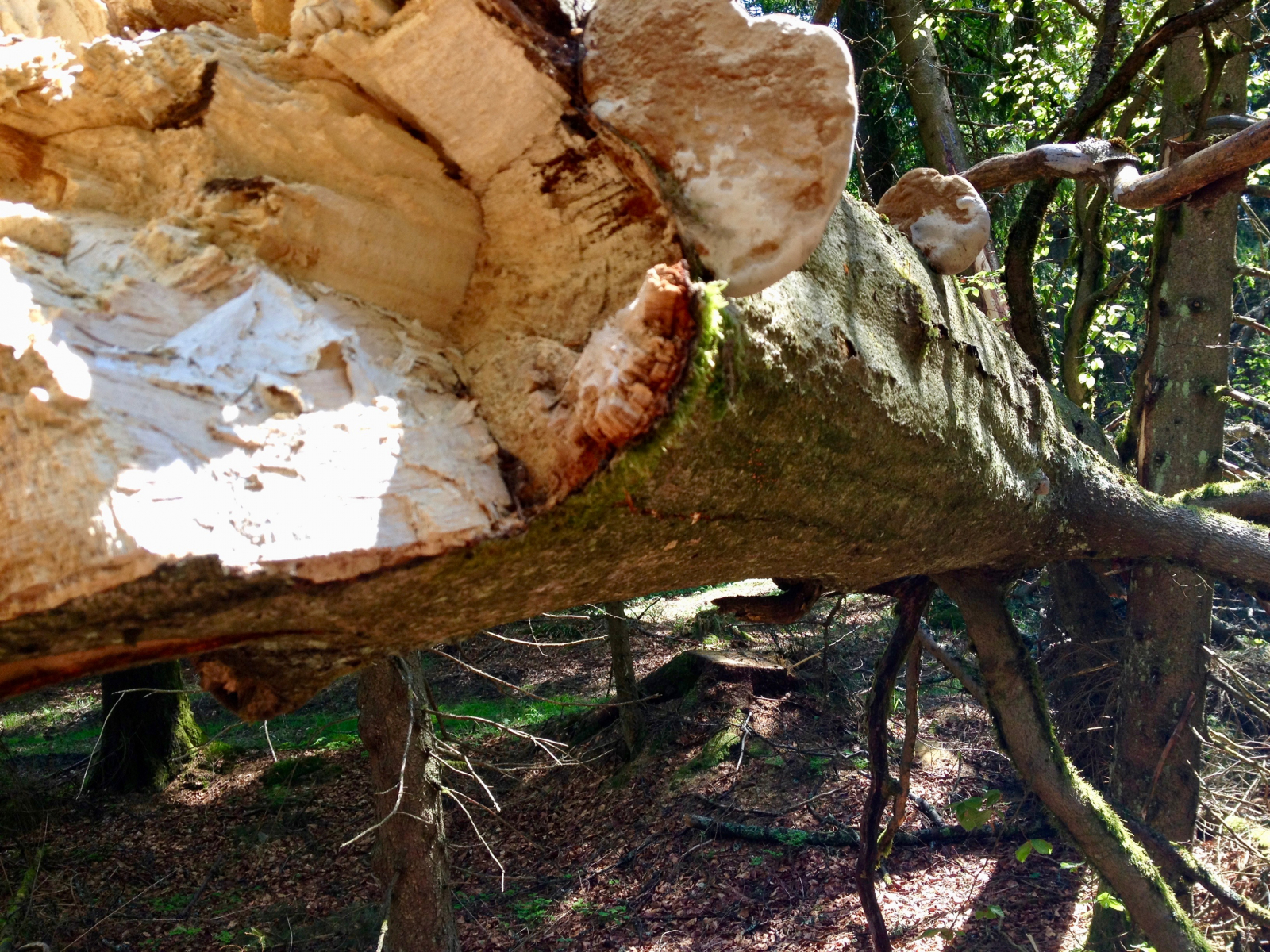 Dafür, dass sie schon so lang im Wald liegt, ist noch eine ganze Menge Holz vorhanden. Das Holz der Äste ist noch nicht einmal morsch, erstaunlich..