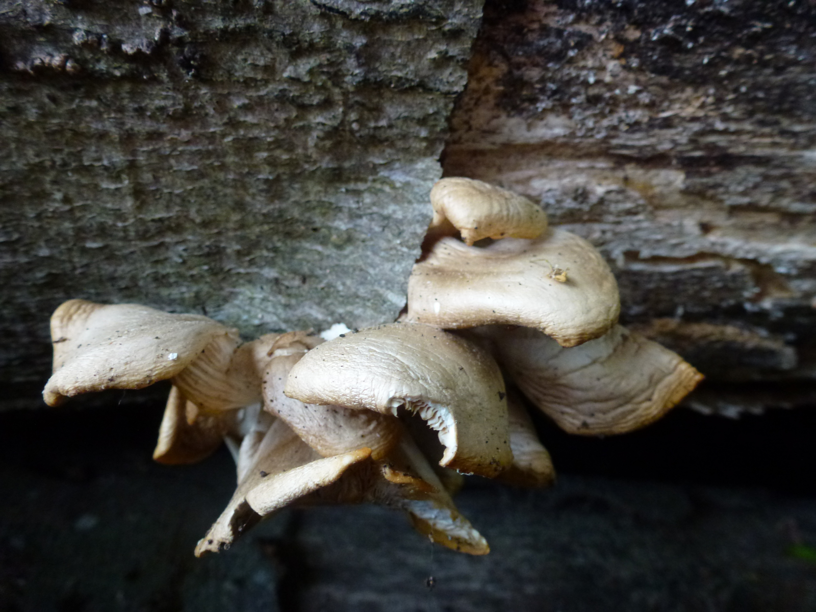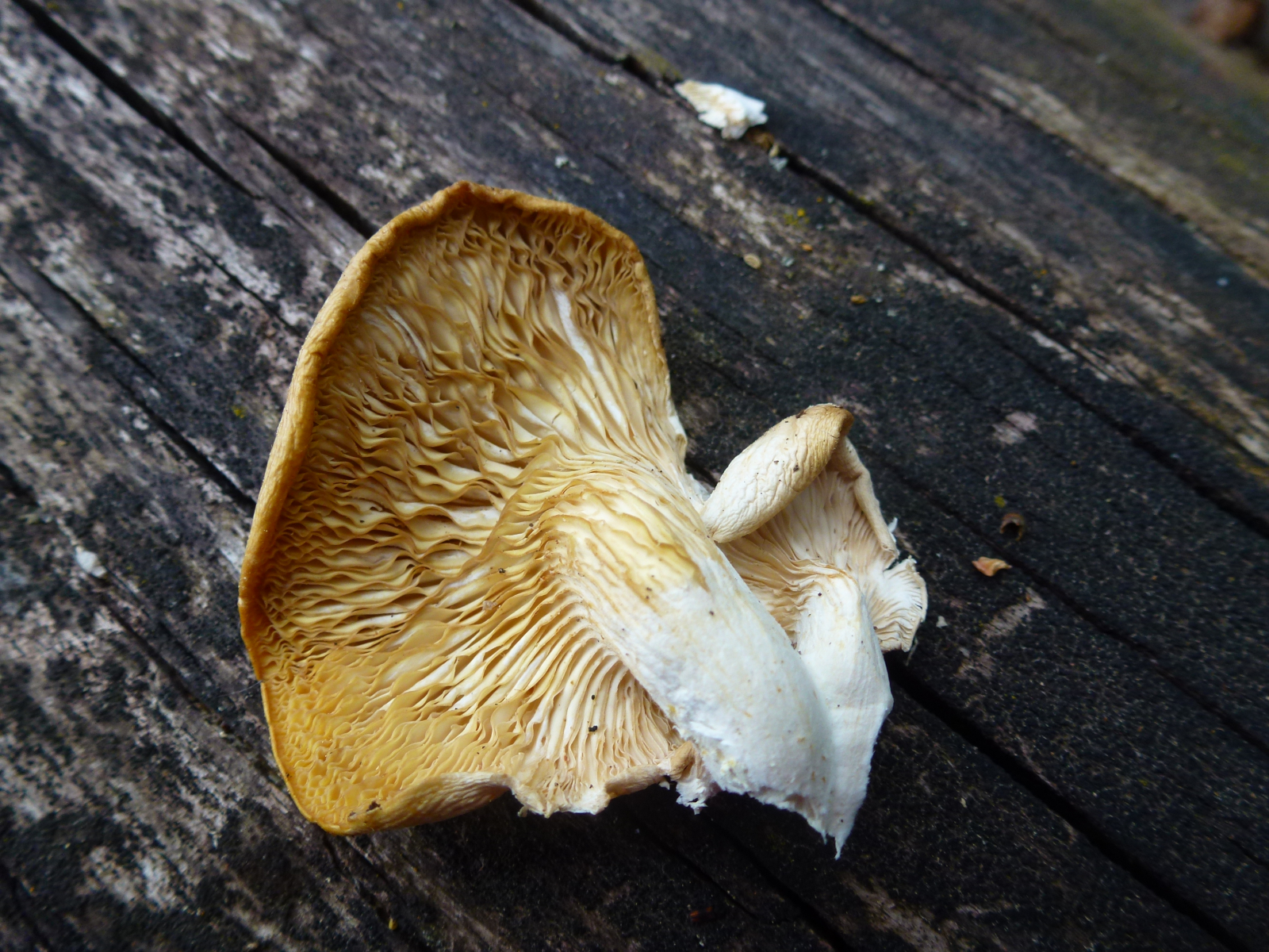 die nachfolgenden Pilze fand ich heute büschelweise an einem alten Buchenholzstapel. Die meisten waren bereits vertrocknet, einige gerade noch ein wenig elastisch. Der Geruch ist anis-artig. Im Wald dachte ich an Sägeblättlinge, aber der Geruch? Und außerdem lag ich bei meinen Bestimmungsversuchen von Pilzen ja schon mehr als oft total daneben ![]()