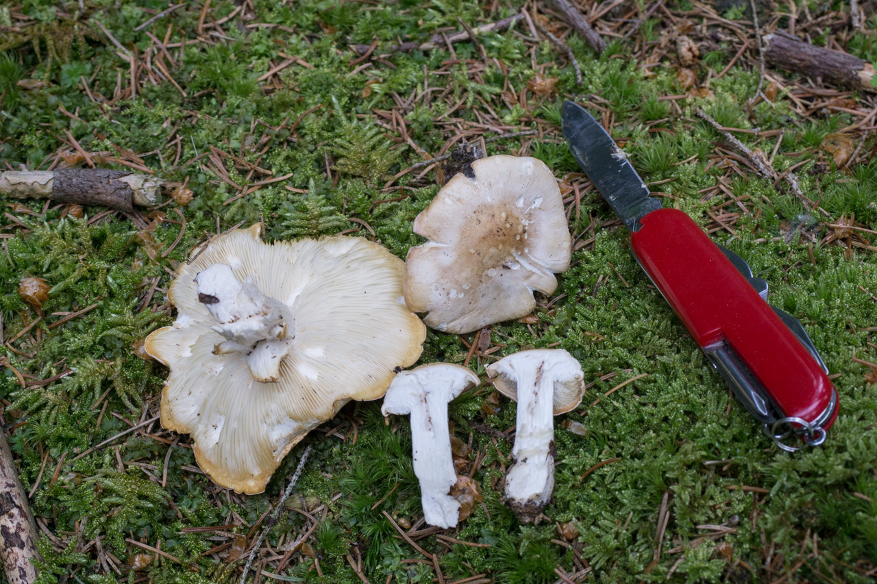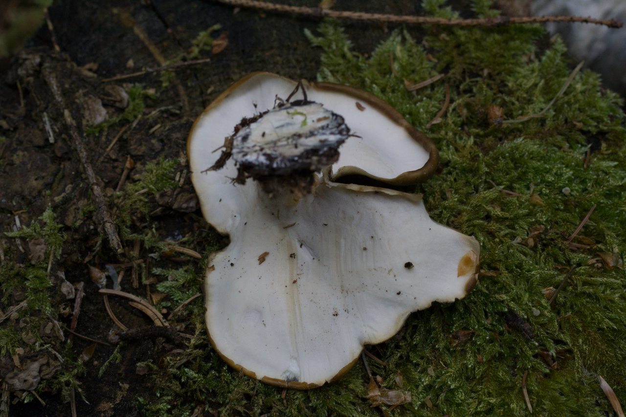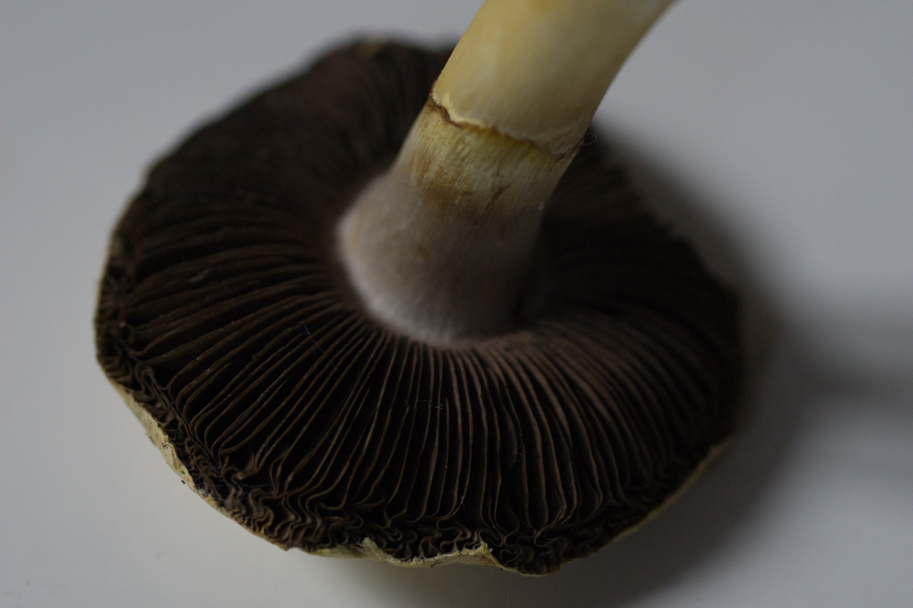 3. Wahrscheinlich konkret unbestimmbar in dem Zustand, aber sollte schon Agaricus spec. sein, oder? Oder käme da noch was anderes mit hellem Hut und dunklen Lamellen in Frage? Geruch leider nicht mehr groß wahrnehmbar, am ehesten einfach leicht pilzig (kein Anis/Karbol). Stielbasis habe ich leider nicht rausbekommen im Ganzen. Ja/Nein, reicht mir auch. :-]