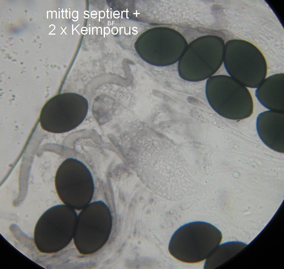 Sporen: ellipsoid, braun, mittig septiert, 25-28 x 15-17µ