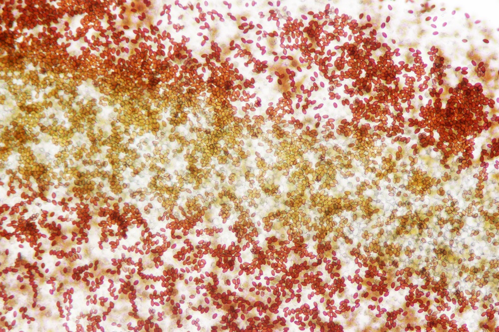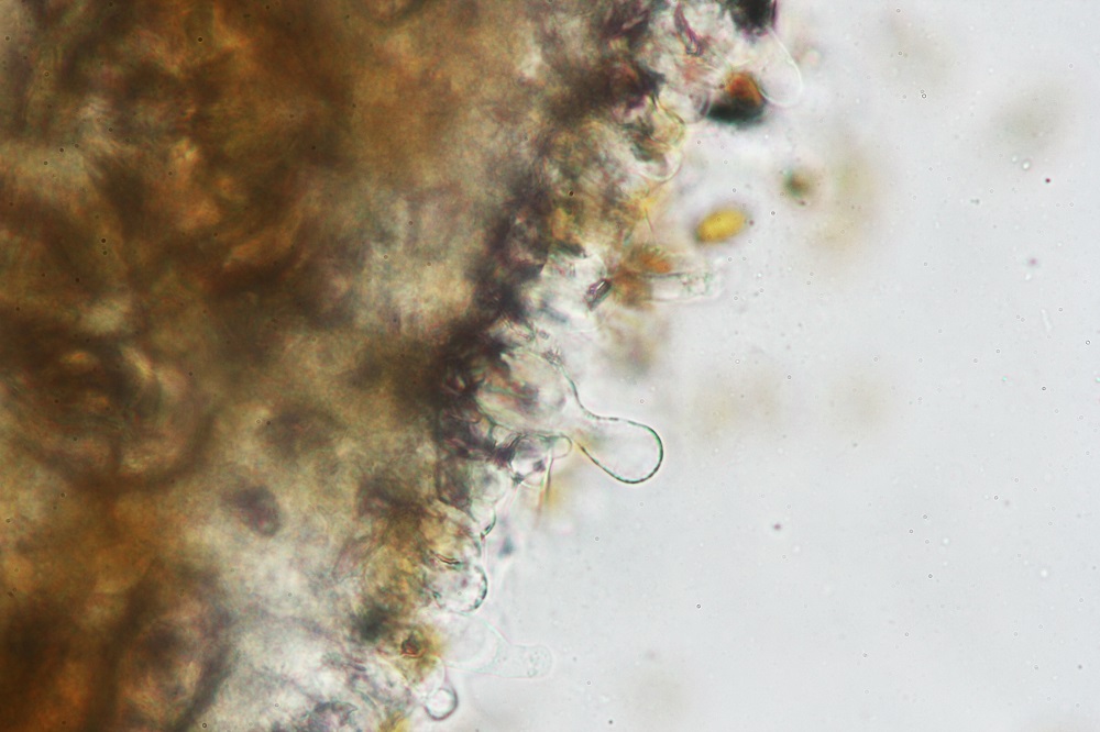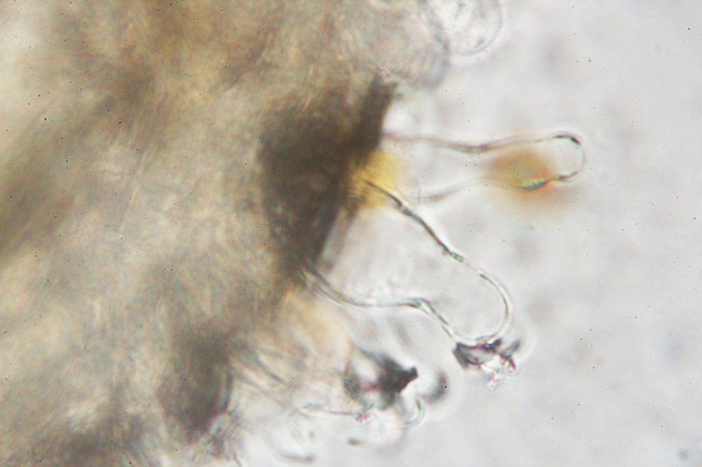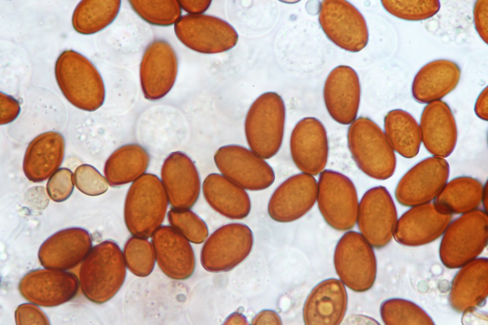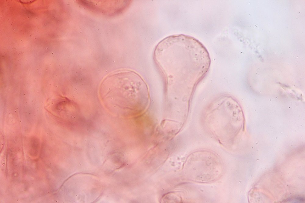 Eine dieser Pilze war der häufige Bolbitius vitellinus, den ich aus Neugier Mikroskopiert habe.