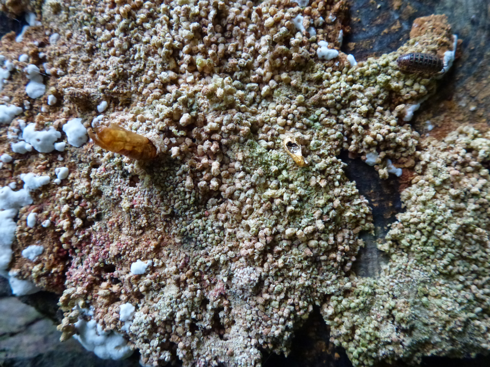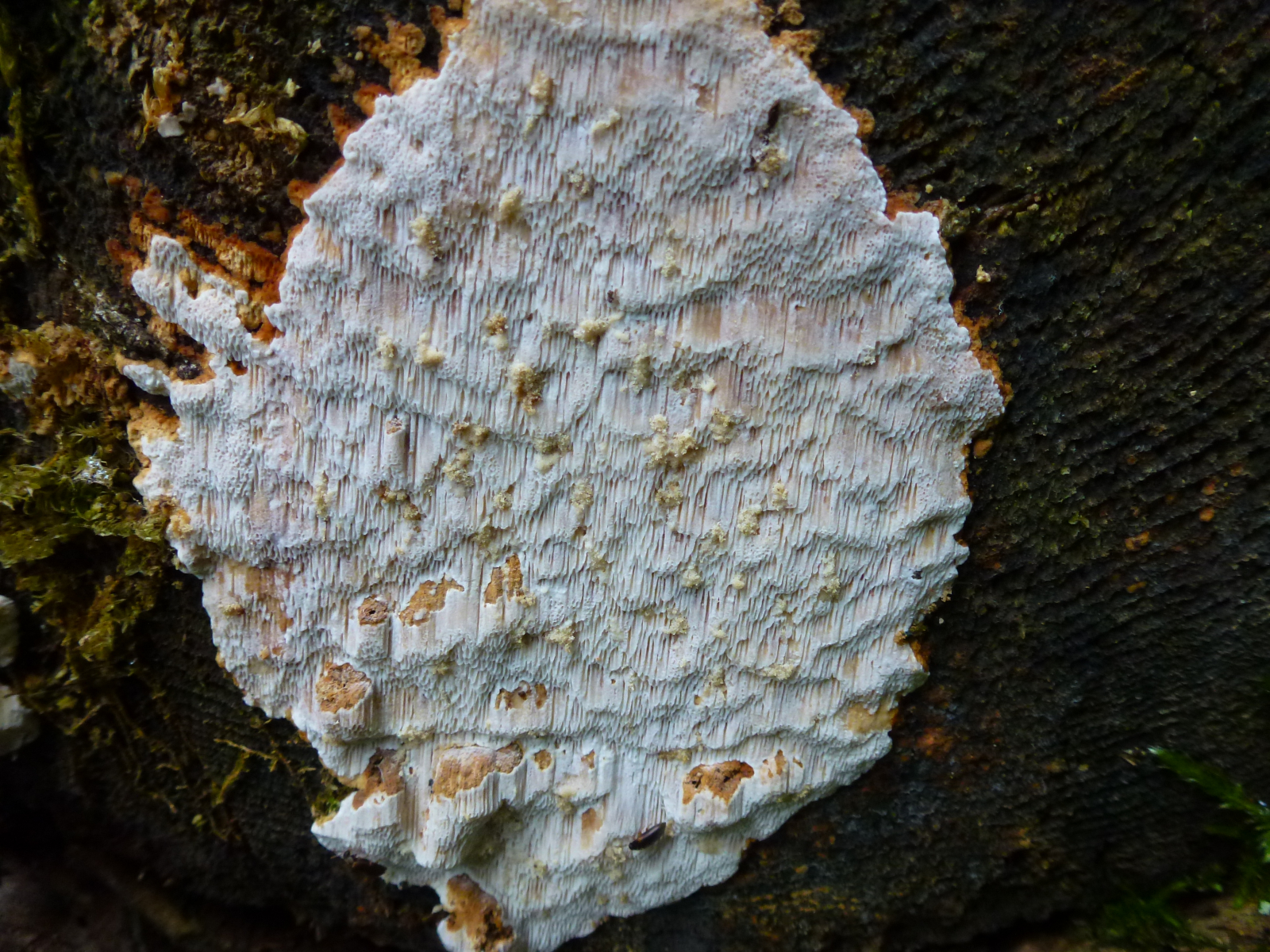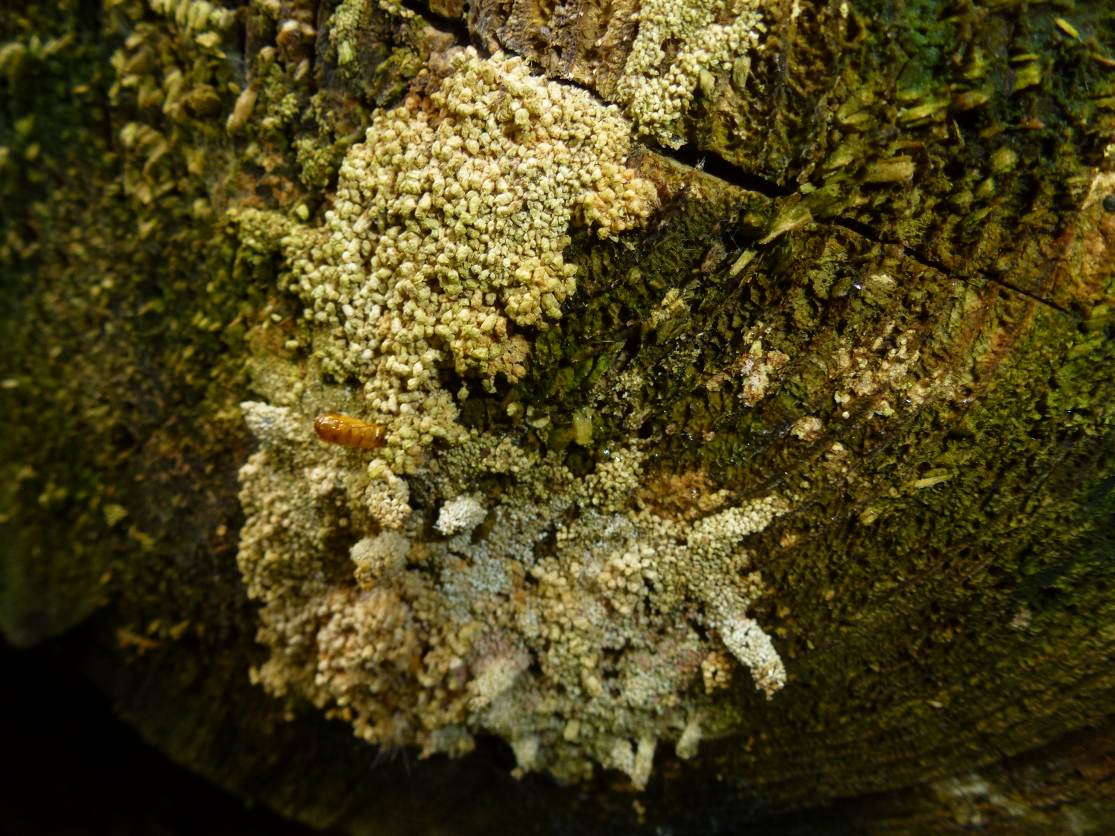 Diese hier fand ich an einem Holzstapel. Vor Ort dachte ich, dass dies ein und derselbe Pilz ist, mit den Fotos erschließt sich mir nicht mehr so ganz warum - typisch ich halt wieder. (Ich habe aber auch viele verschiedene Pilze und Pflanzen gefunden - also heute war der Tag der Unbekannten