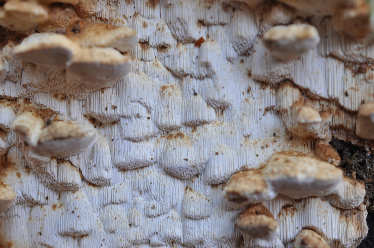Diese hier fand ich an einem Holzstapel. Vor Ort dachte ich, dass dies ein und derselbe Pilz ist, mit den Fotos erschließt sich mir nicht mehr so ganz warum - typisch ich halt wieder. (Ich habe aber auch viele verschiedene Pilze und Pflanzen gefunden - also heute war der Tag der Unbekannten