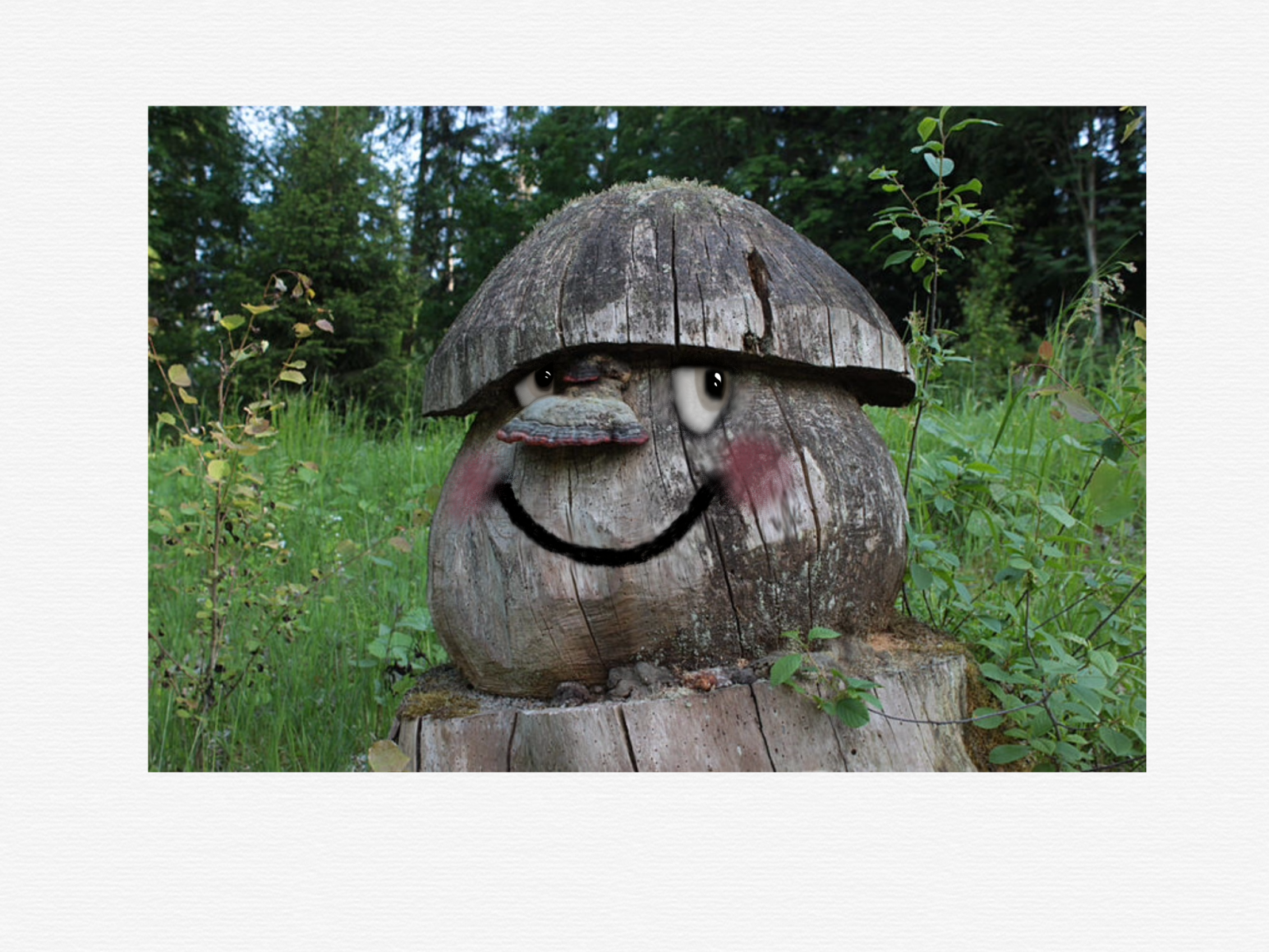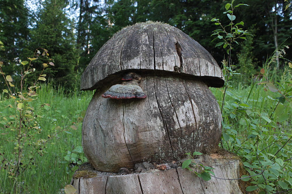 • Wo ich gerade auf das Thema stoße... - mitten im Wald, also kein ungewöhnlicher Fundort. Aber doch eine tolle Schnitzarbeit - die Pilze sehen aus wie echt.